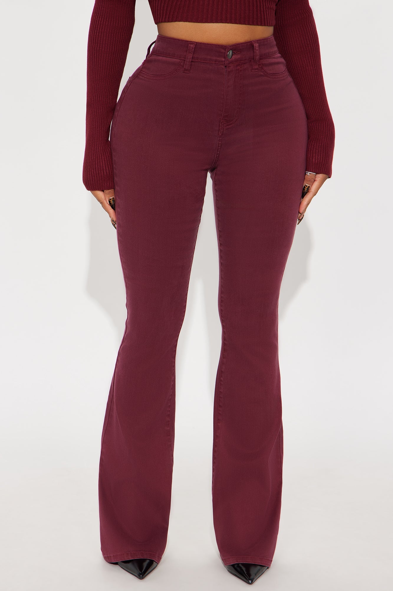 Deep In My Soul Flare Jeans - Burgundy