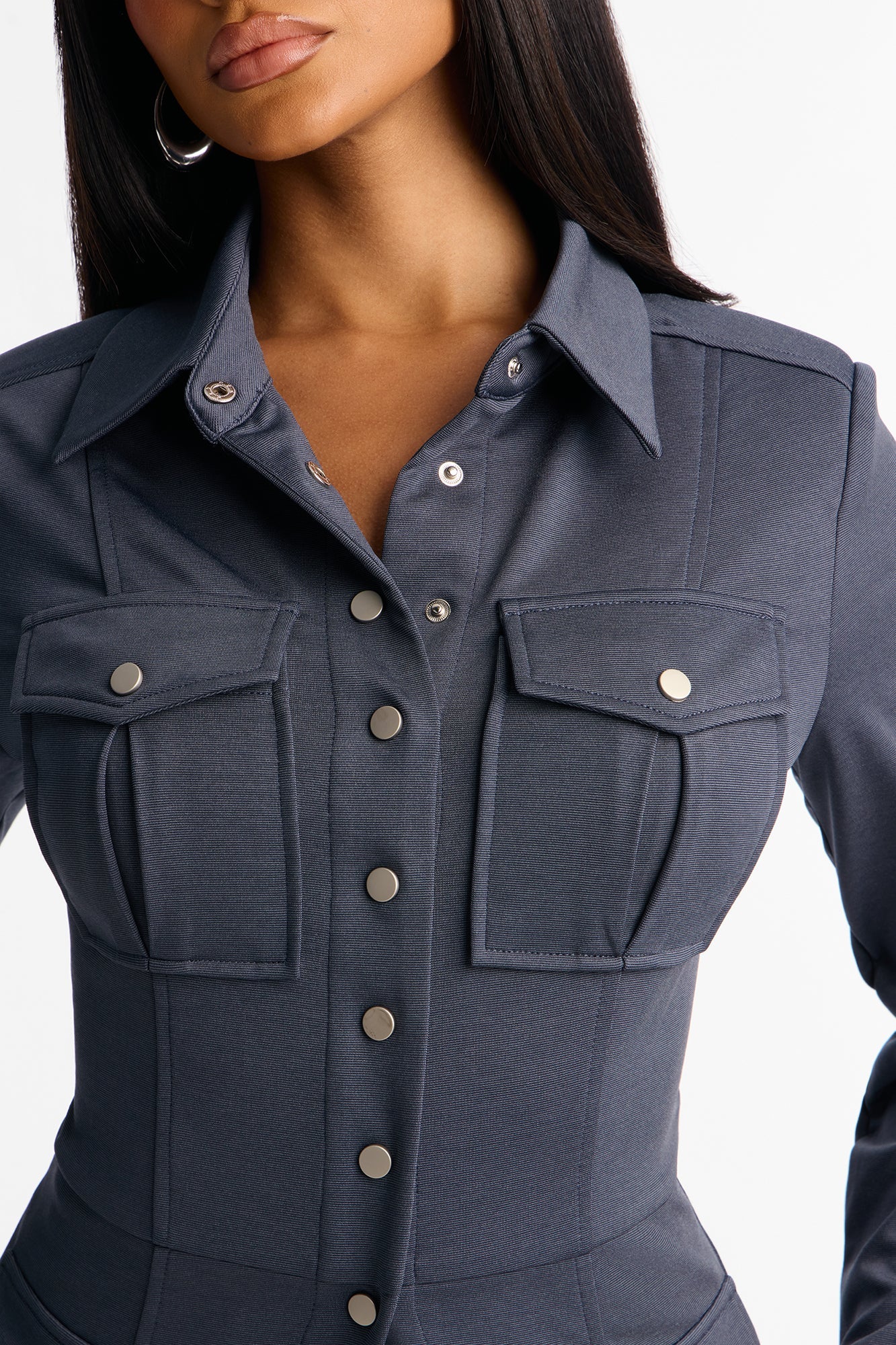 Do As I Say Pocket Detail Mini Skirt Set - Charcoal