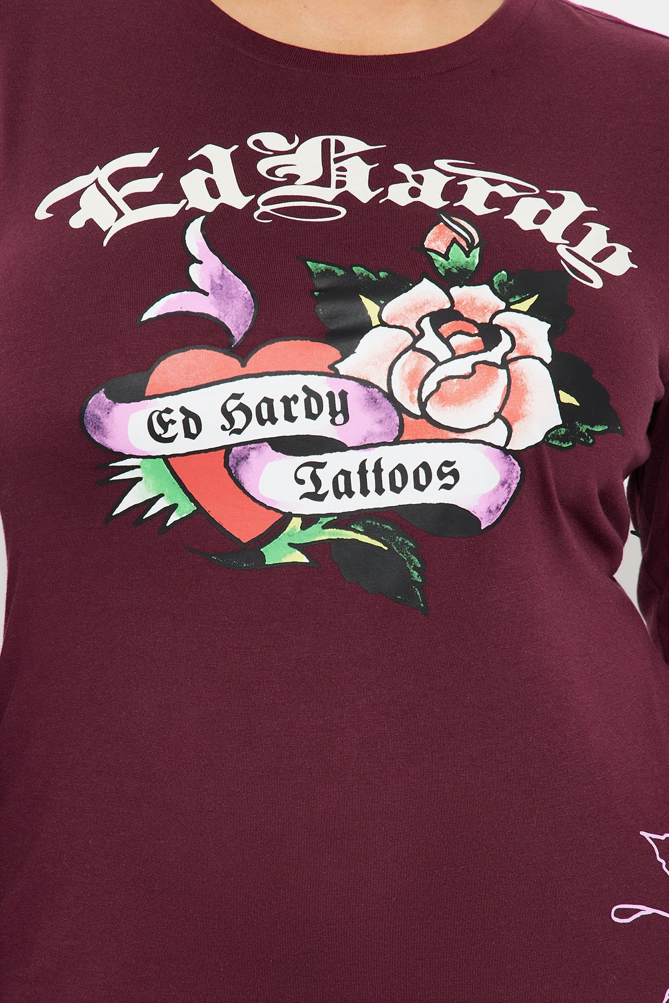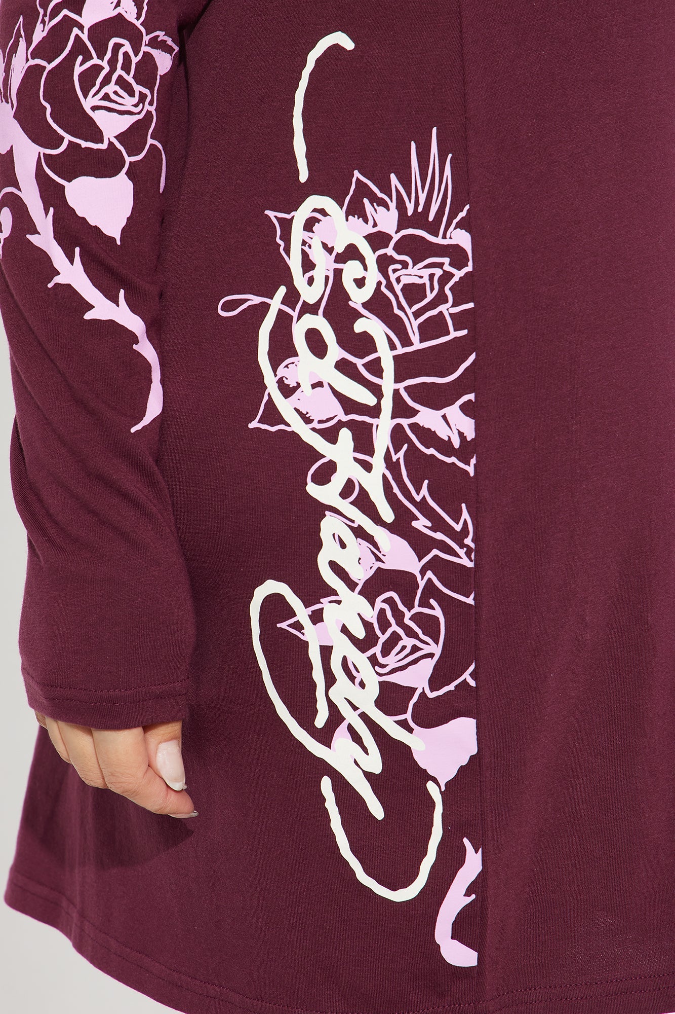 Ed Hardy Heart & Rose Long Sleeve Mini Dress - Wine