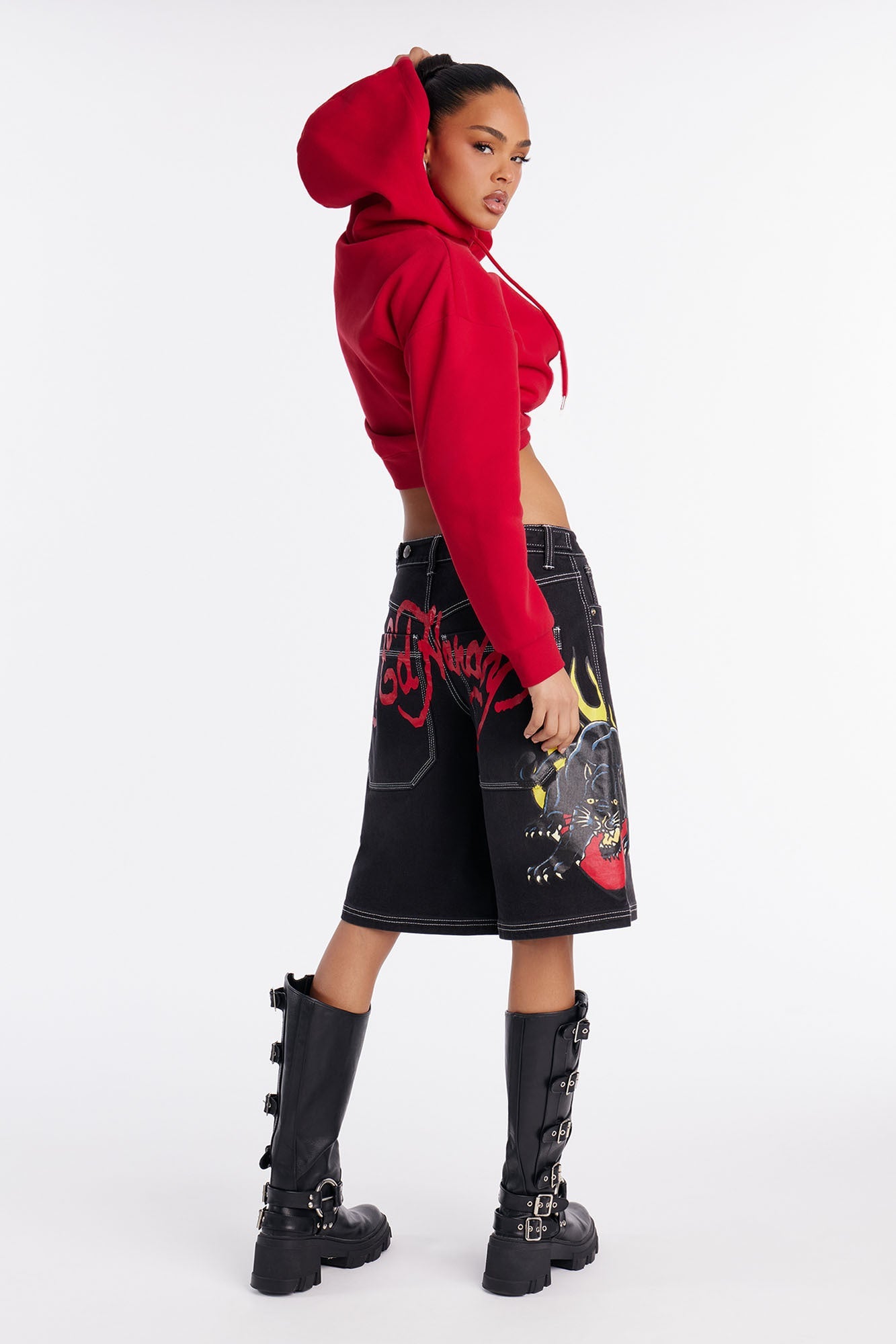 Ed Hardy Panther Heart Denim Jorts - Black Wash