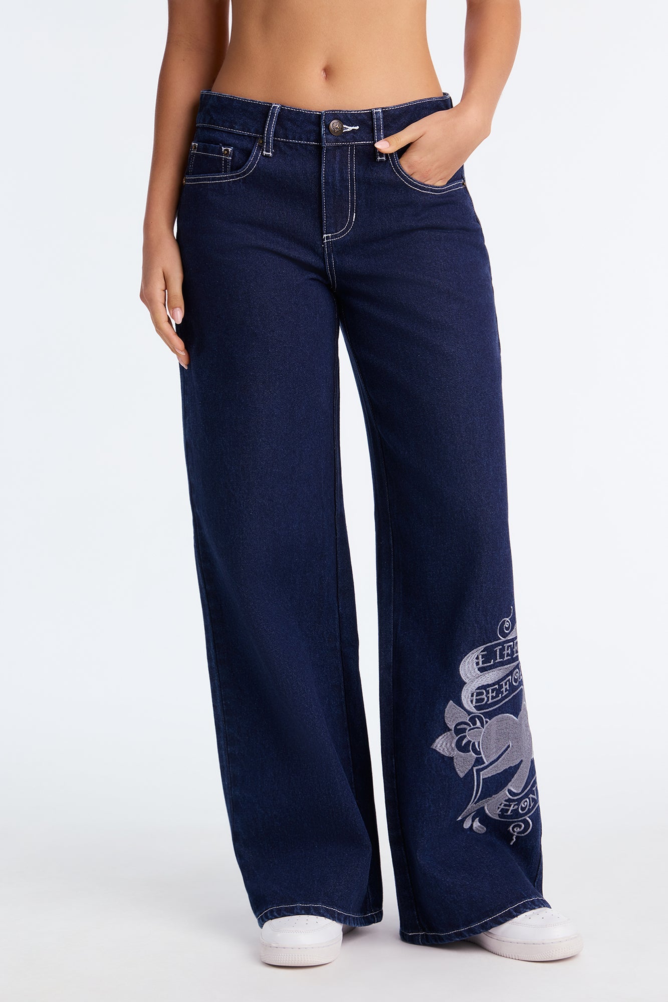 Ed Hardy Tiger Baggy Jeans - Medium Wash