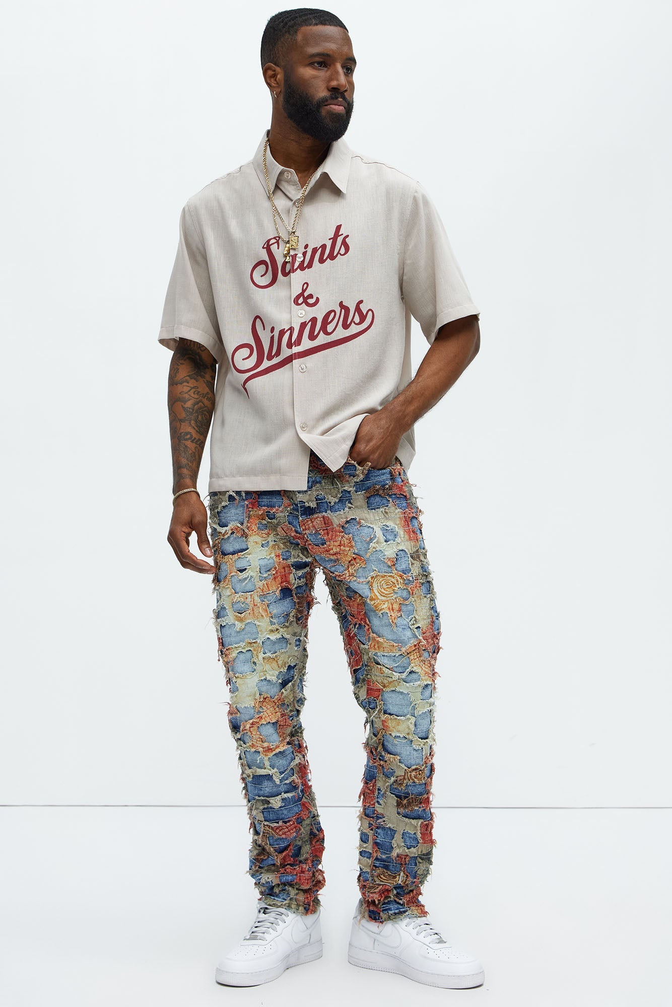 Edgar Vintage Shredded Slim Jeans - Medium Wash