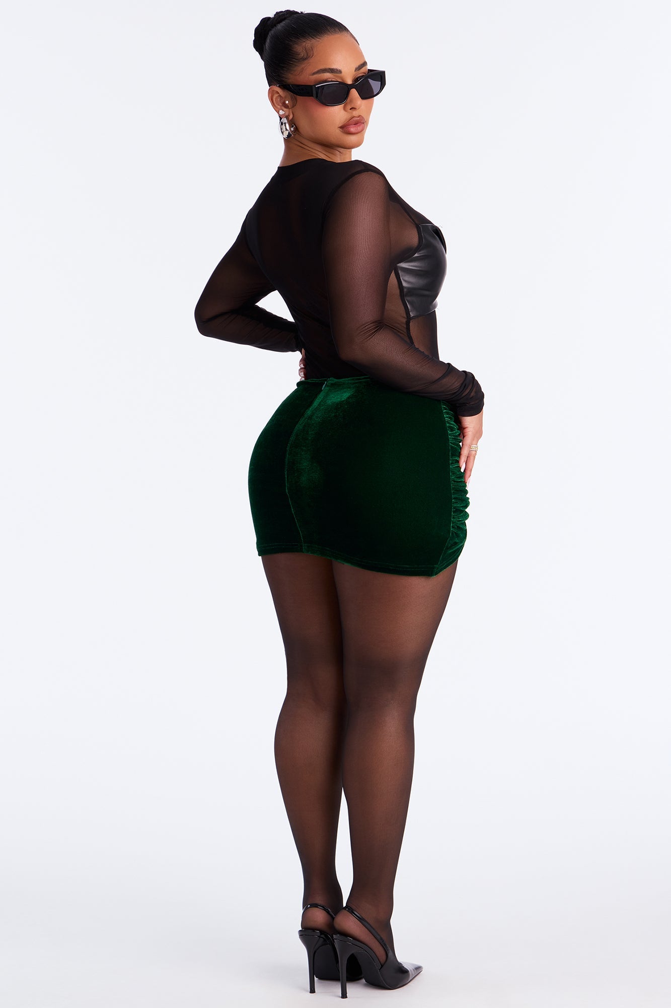 Elegant Glow Draped Velvet Mini Skirt - Green