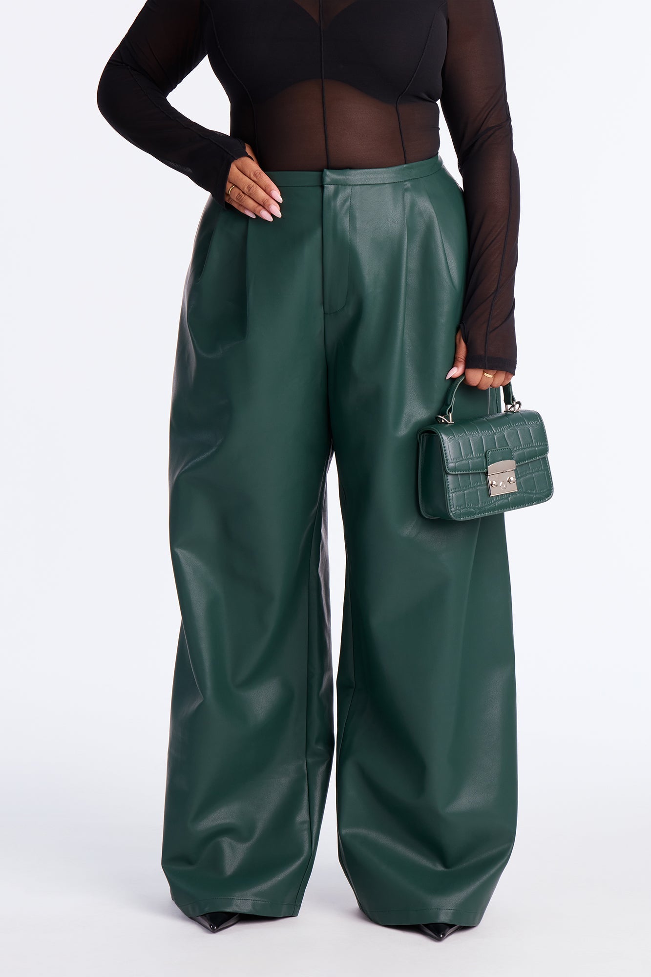 Elyna High Rise Faux Leather Wide Leg Pant 33 - Hunter Green