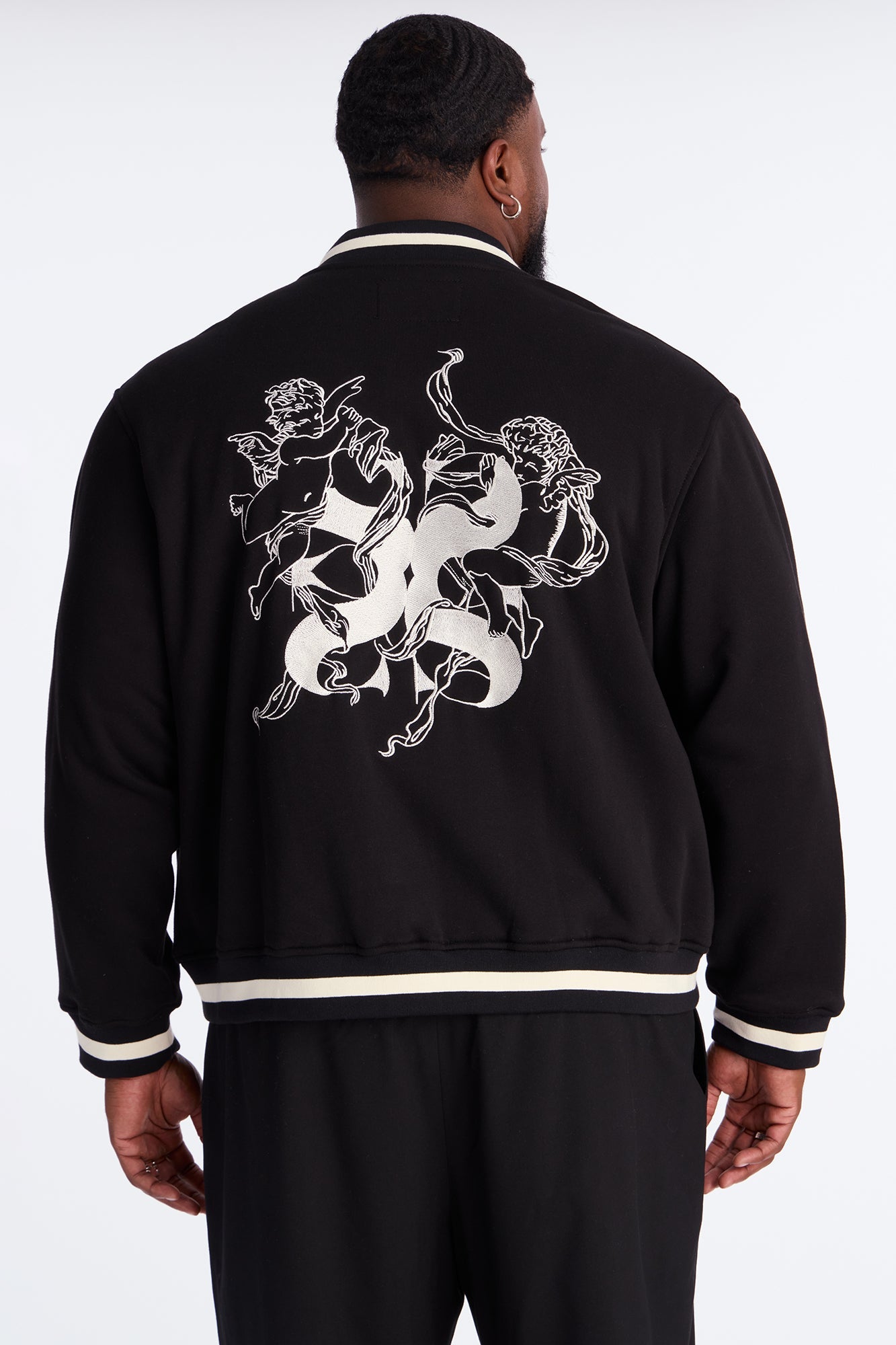 Embroidered Angels Above Varsity Jacket - Black