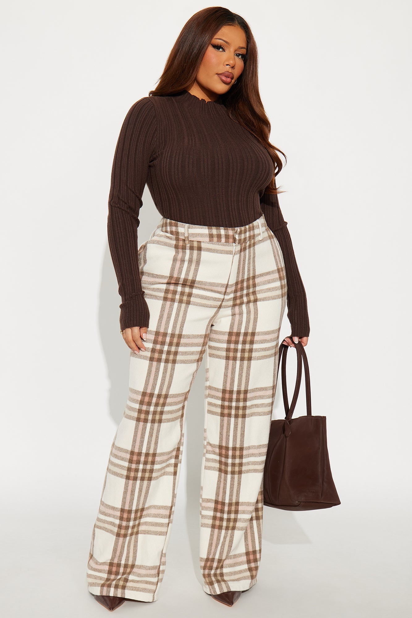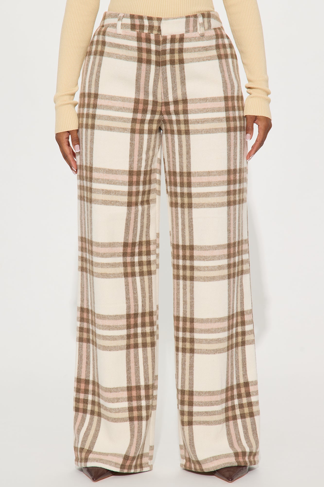 Emma Plaid Trouser Wide Leg Pant 33″ - Cream/combo