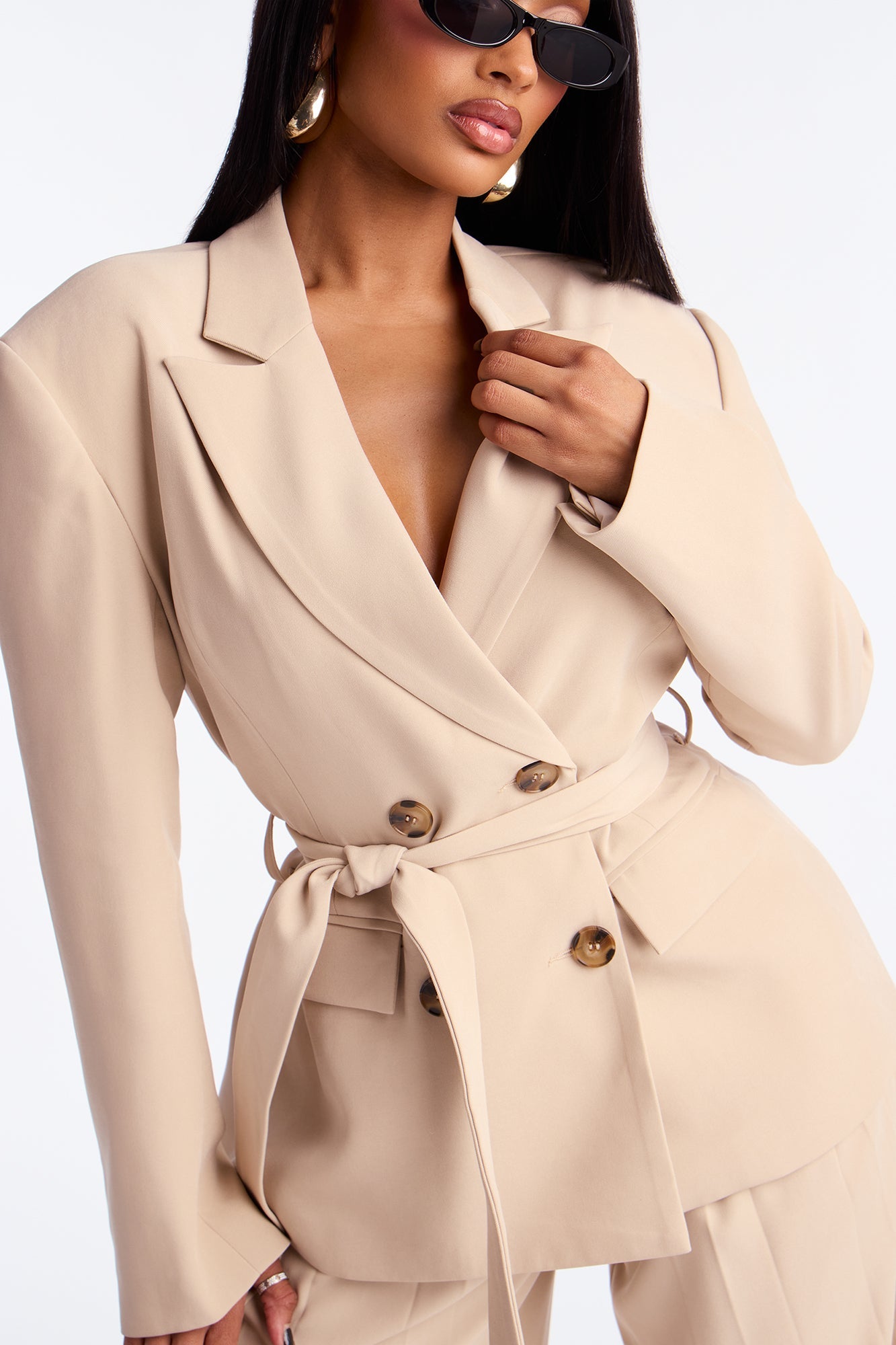 End Of Time Double Breasted Blazer - Stone
