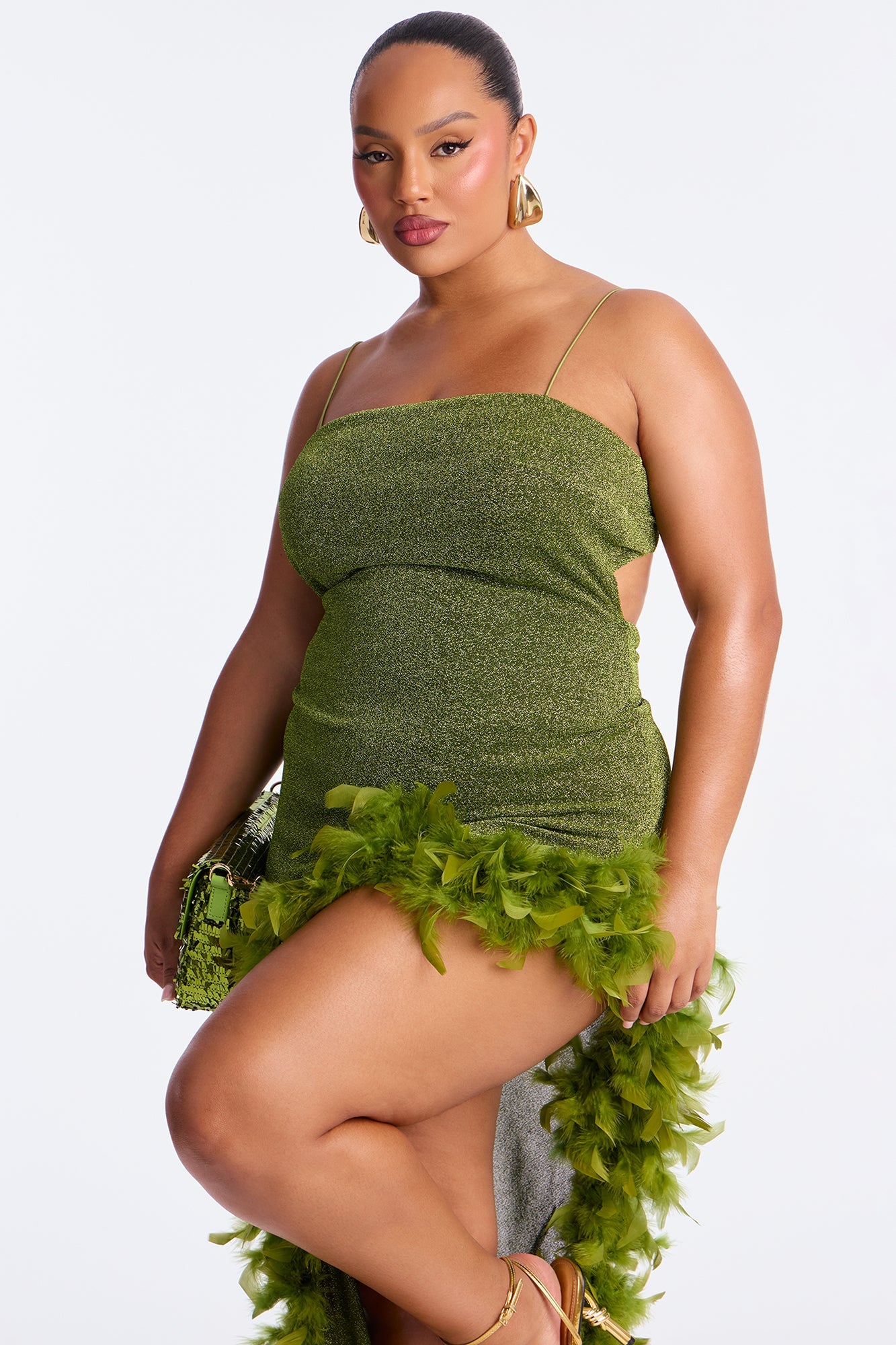 Feel The Spark Feathered Metallic Gown - Chartreuse