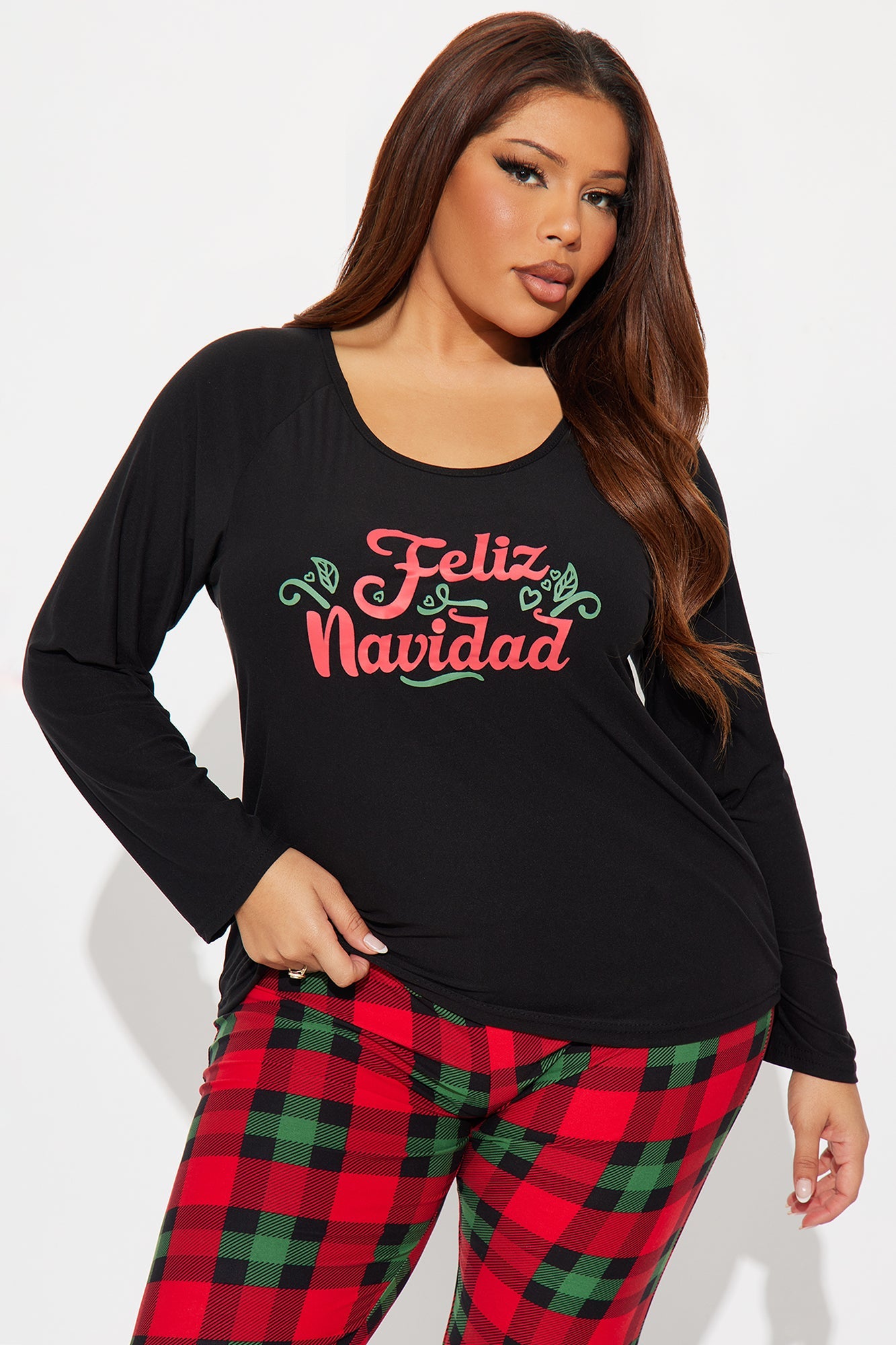 Feliz Navidad Matching Family Long Sleeve PJ Jogger Set - Black/combo