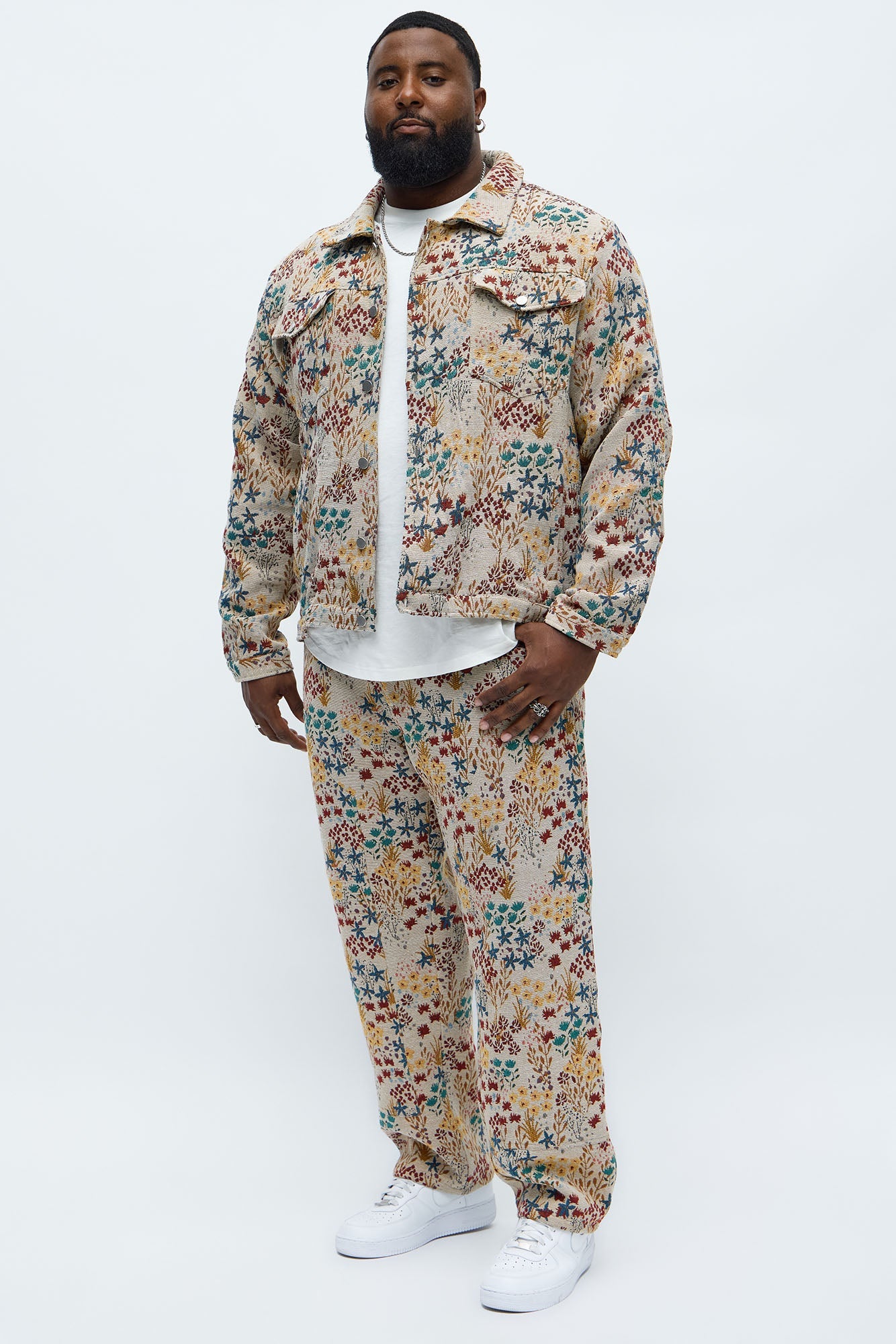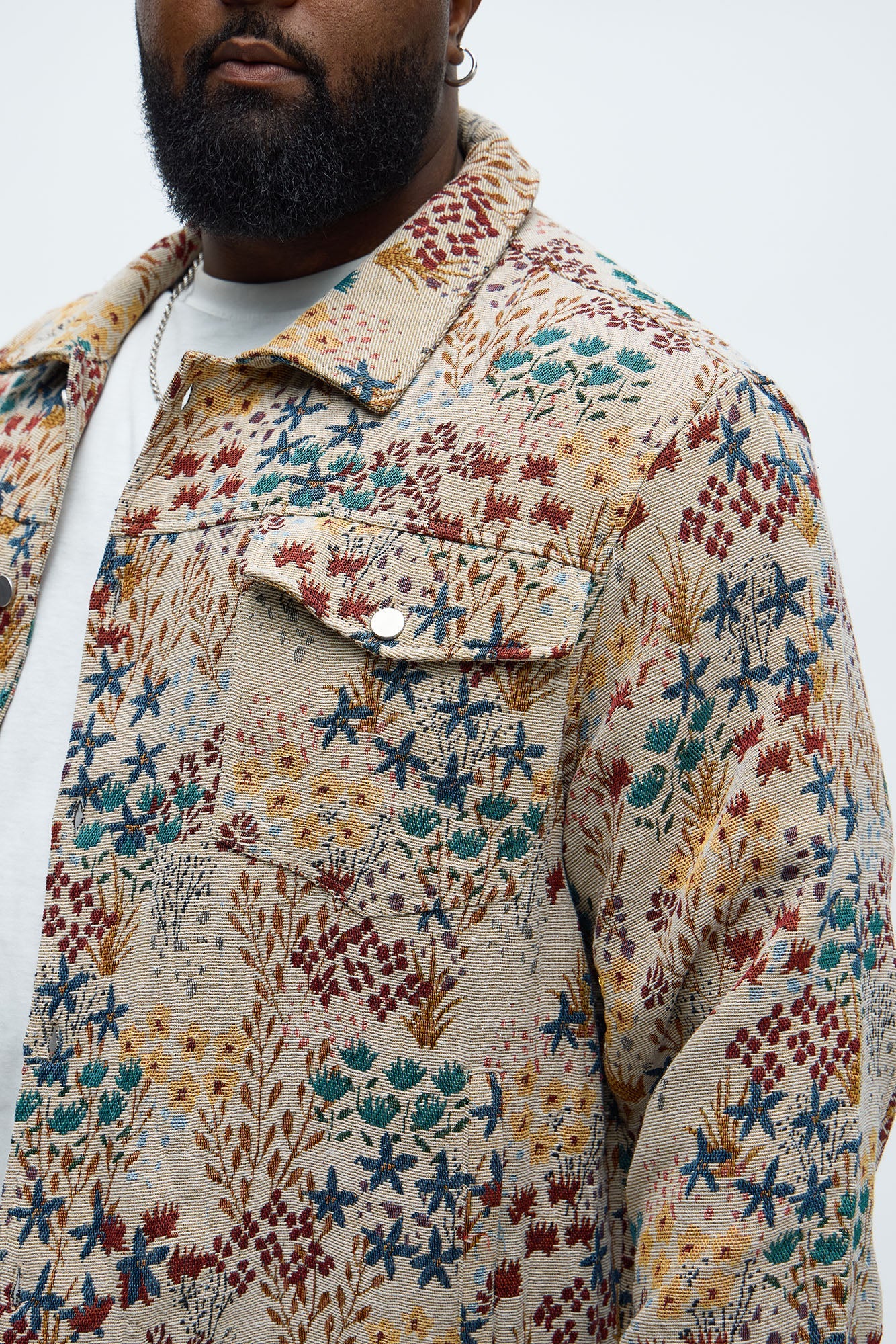 Garden Tapestry Trucker Jacket - Tan/Multi