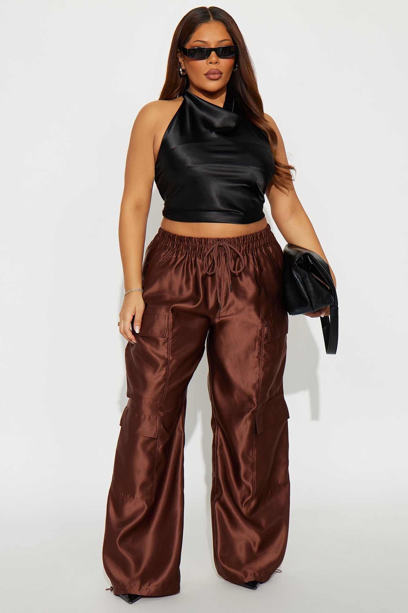 Gemma Cargo Satin Jogger Pant - Chocolate