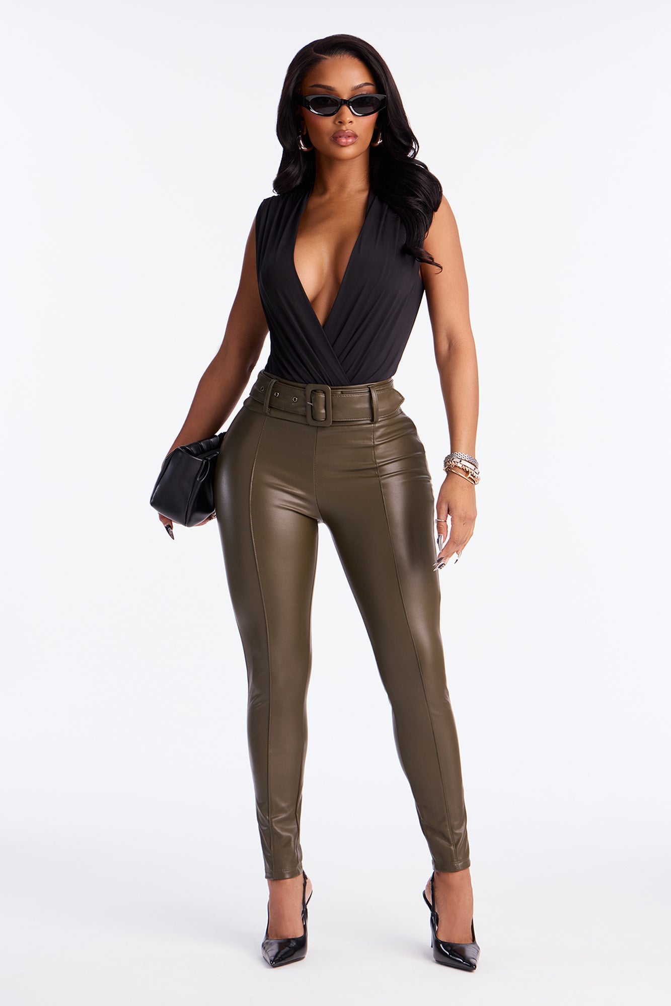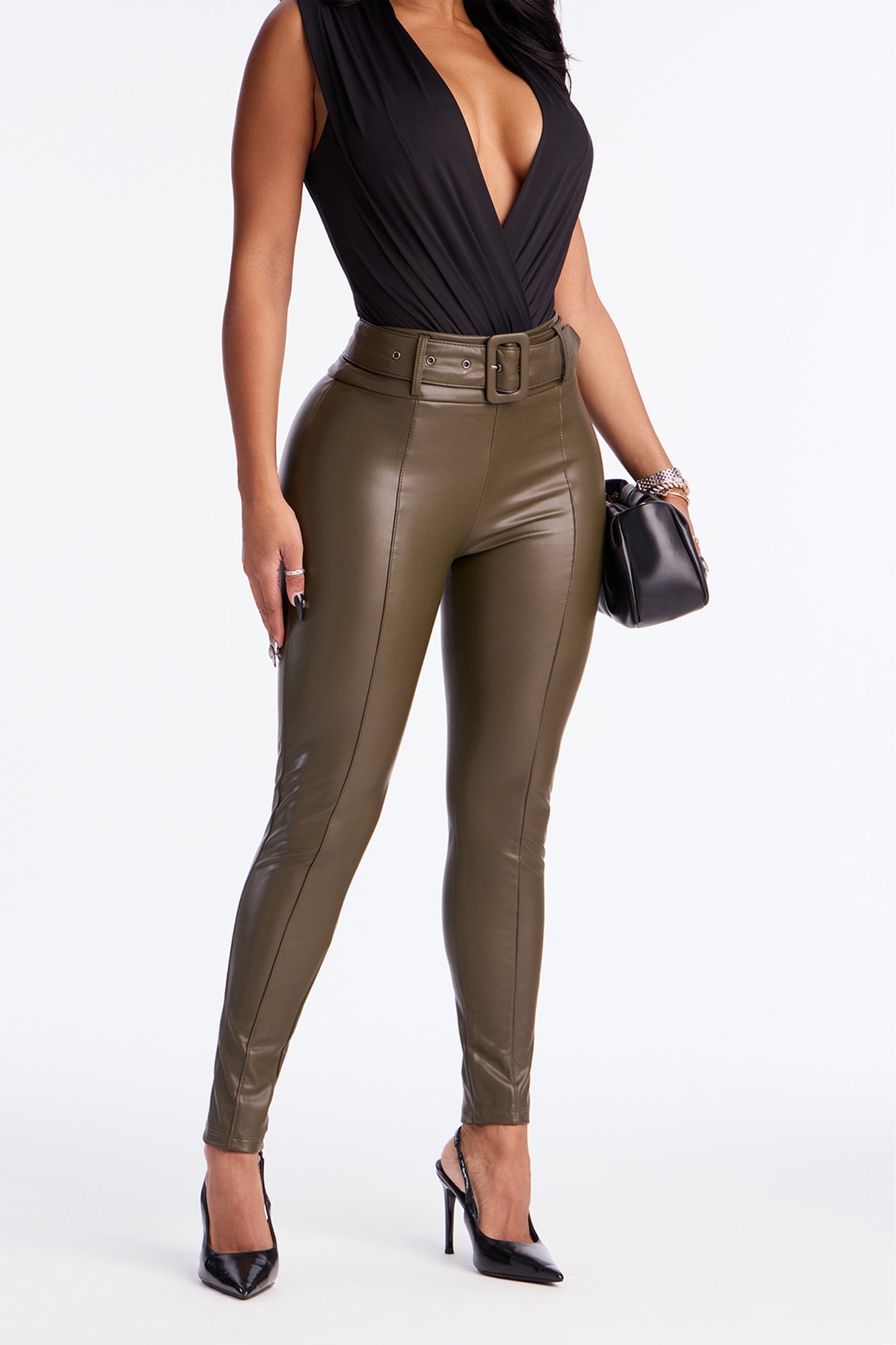 GNO Faux Leather Skinny Pant - Olive