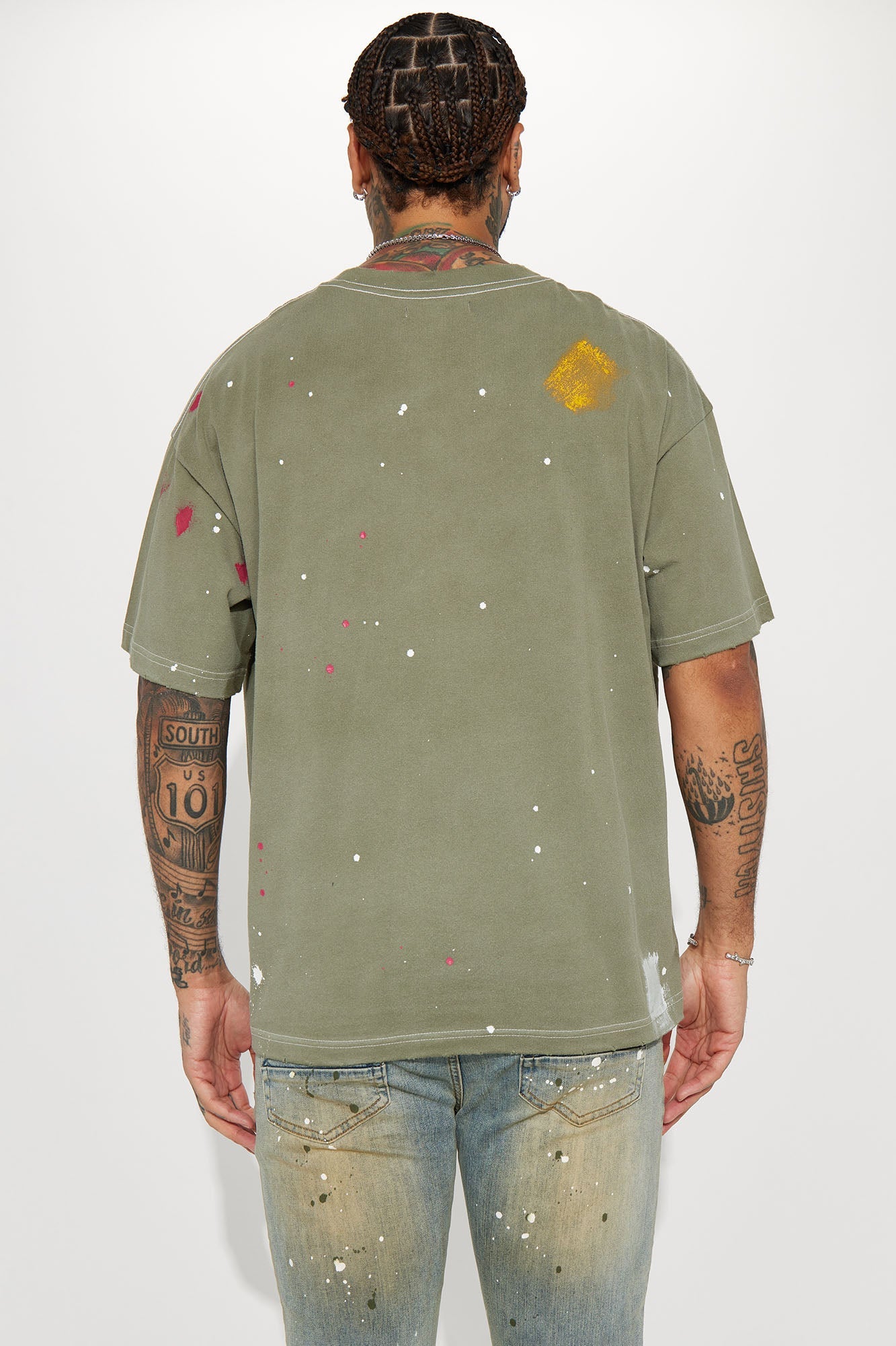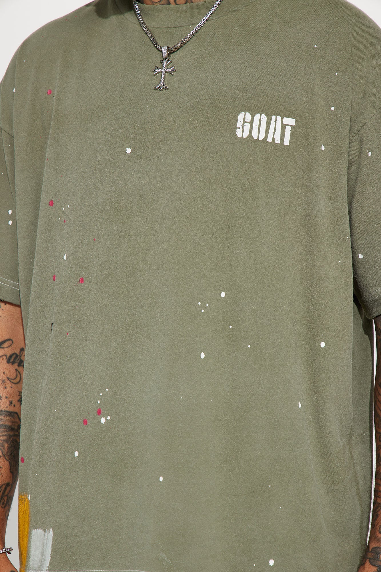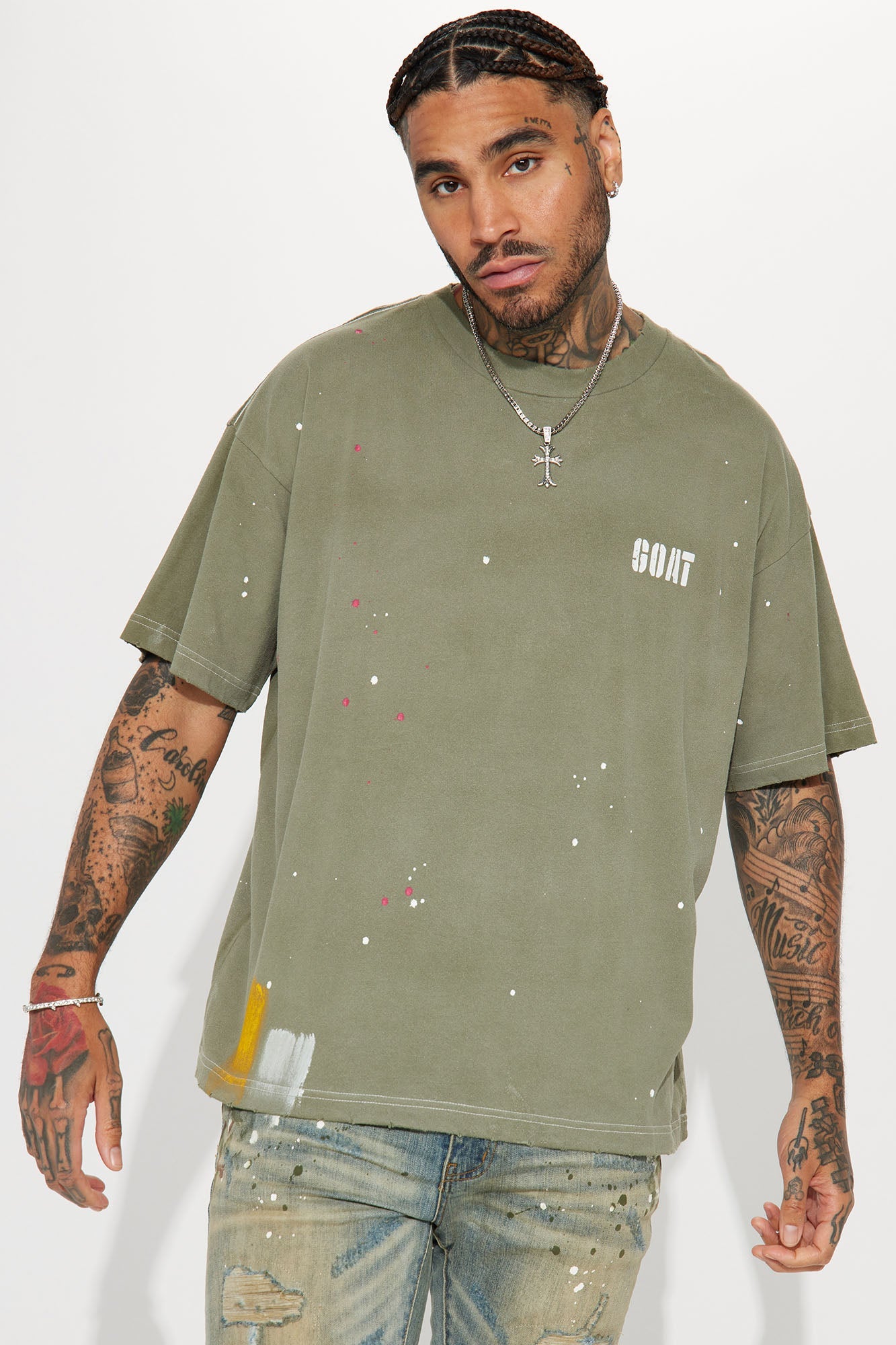 GOAT Paint Splatter Oversized Short Sleeve Tee - Olive