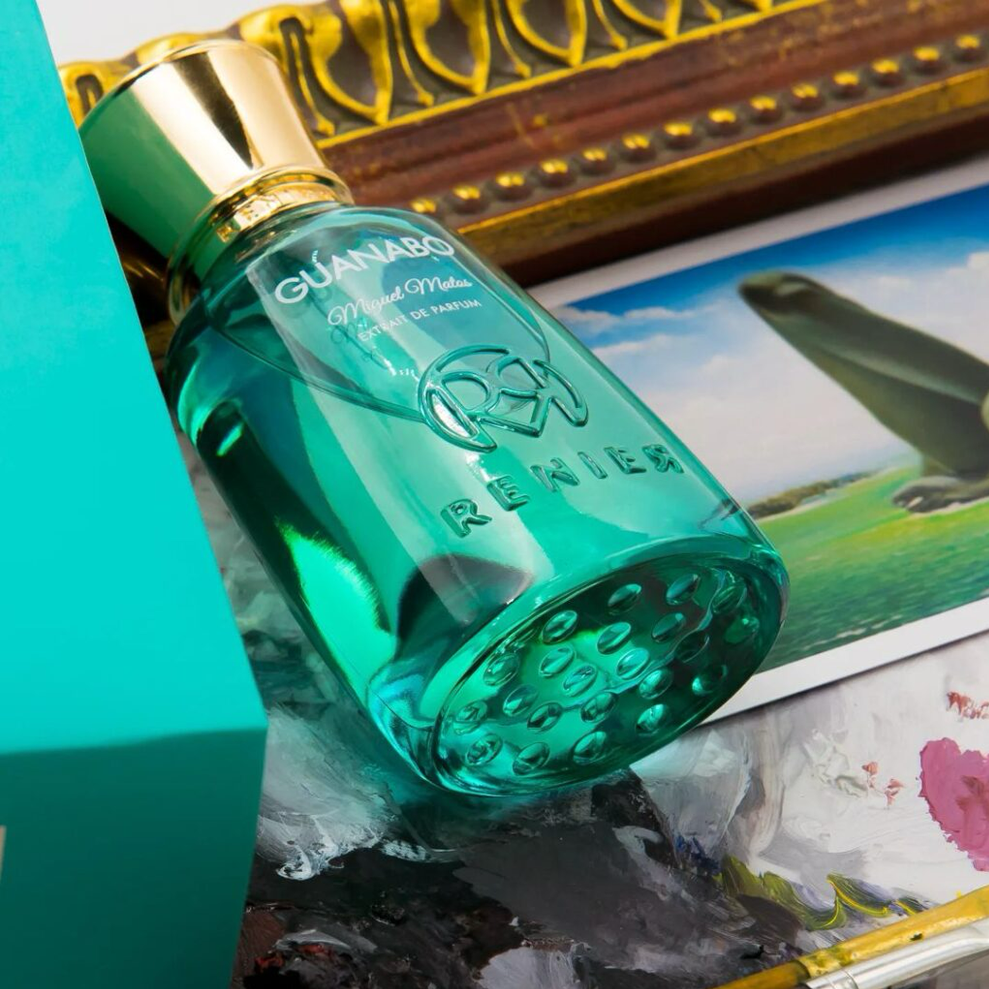 As an extrait de parfum, Guanabo offers strong longevity with moderate projection, transitioning smoothly from citrus to marine and floral elements.