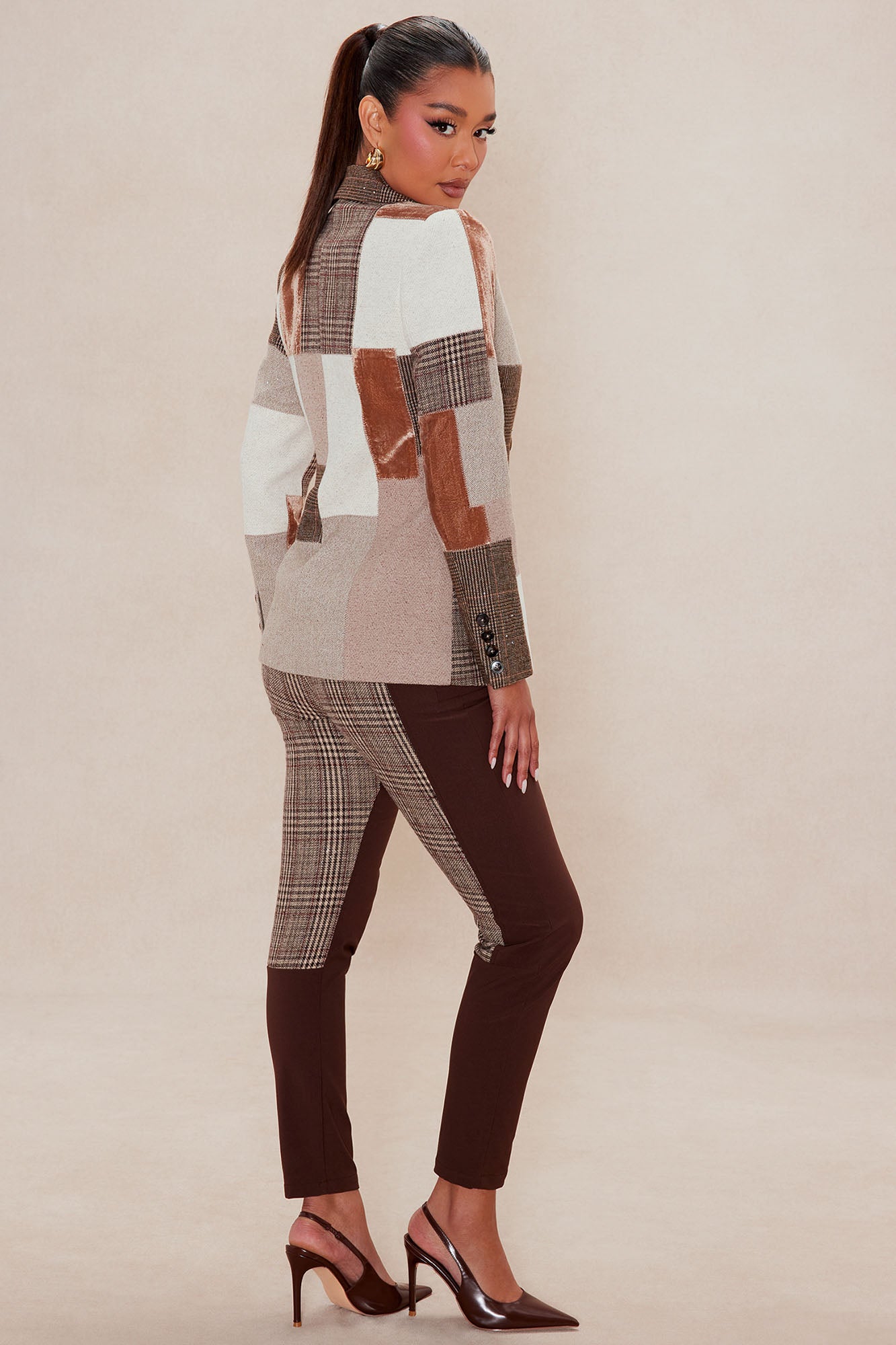 Harlow Embellished Plaid Riding Pant - Dark Brown