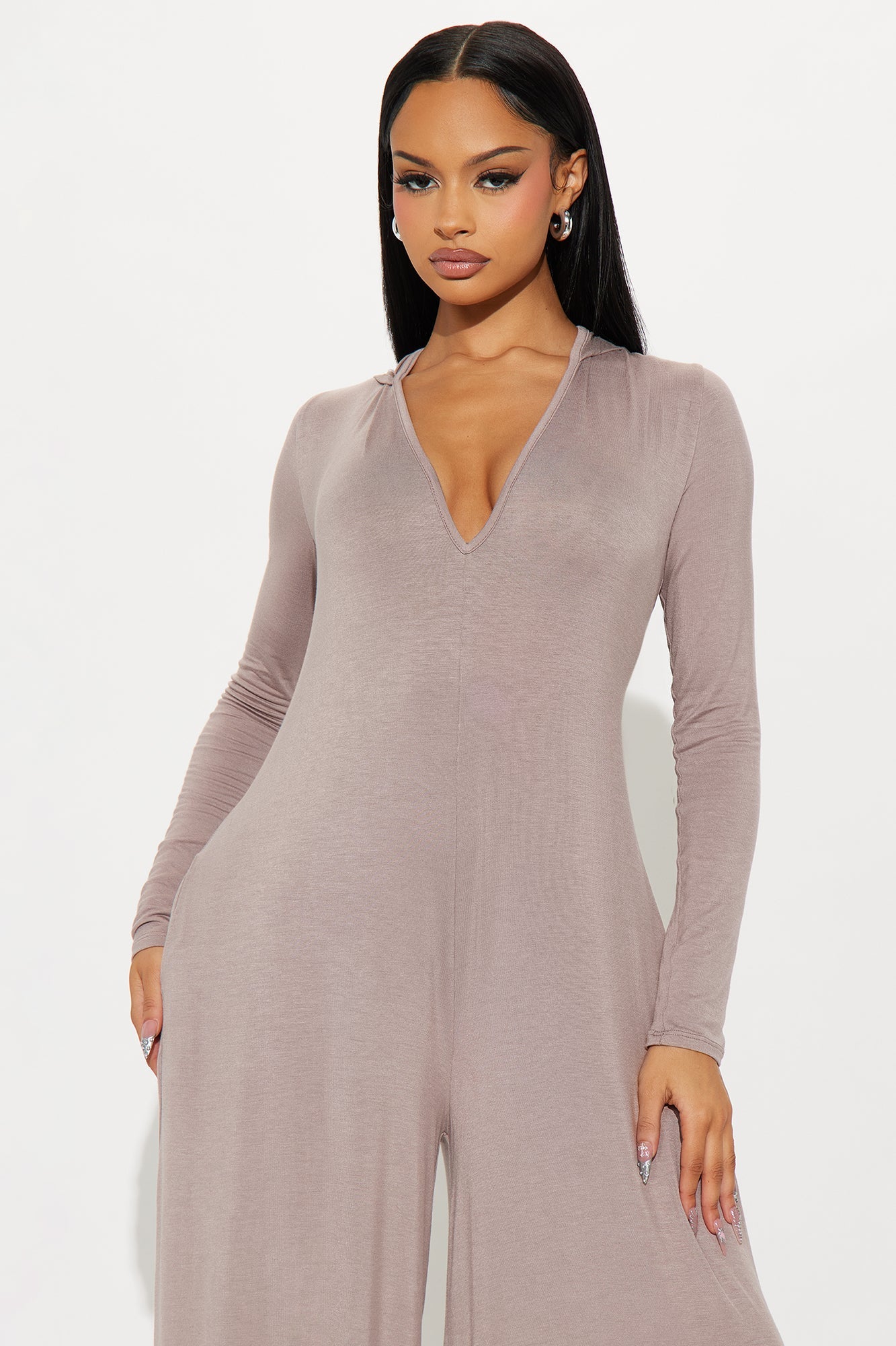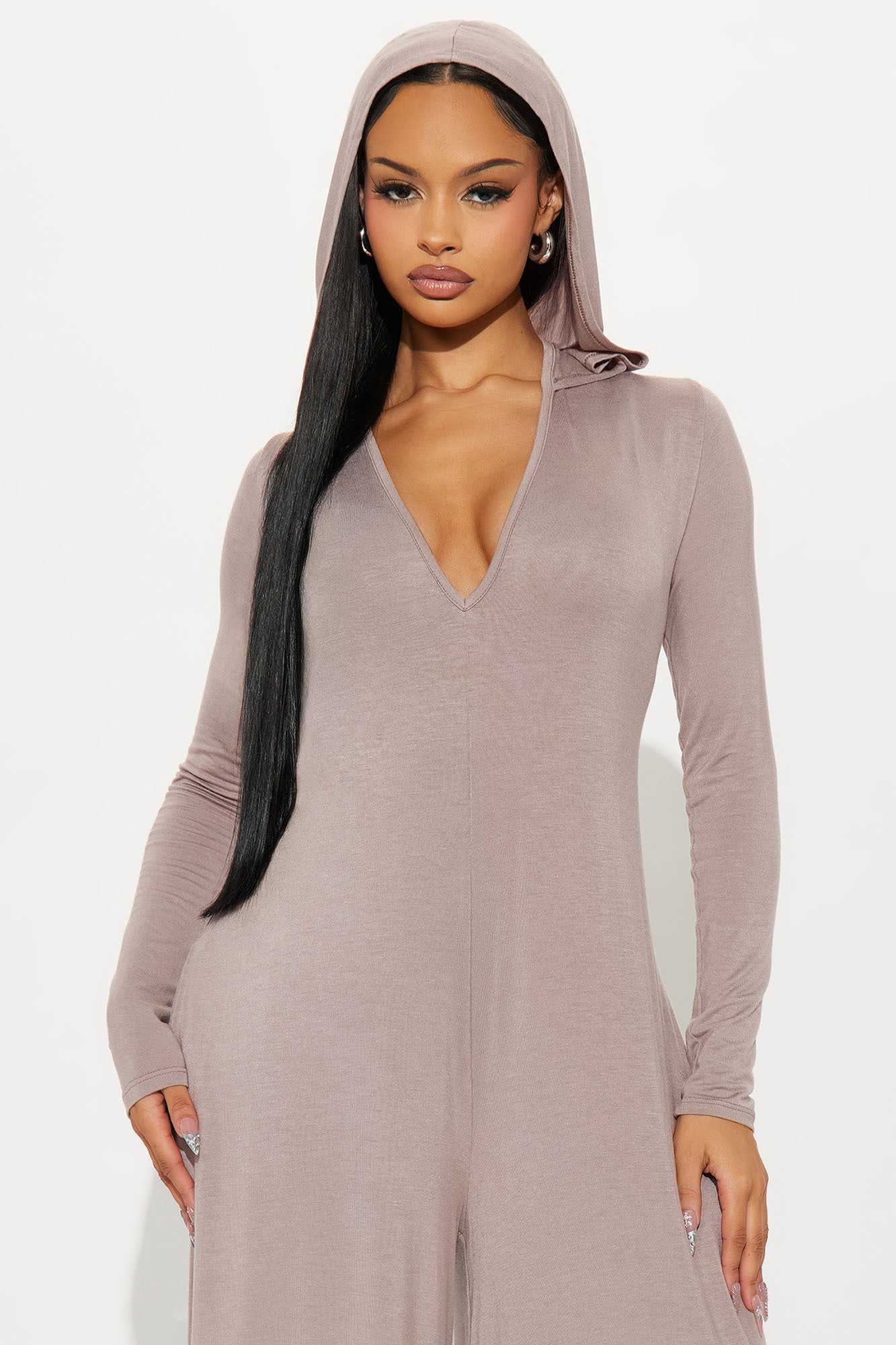 Haven Hooded Wide Leg Long Sleeve Jumpsuit - Mocha
