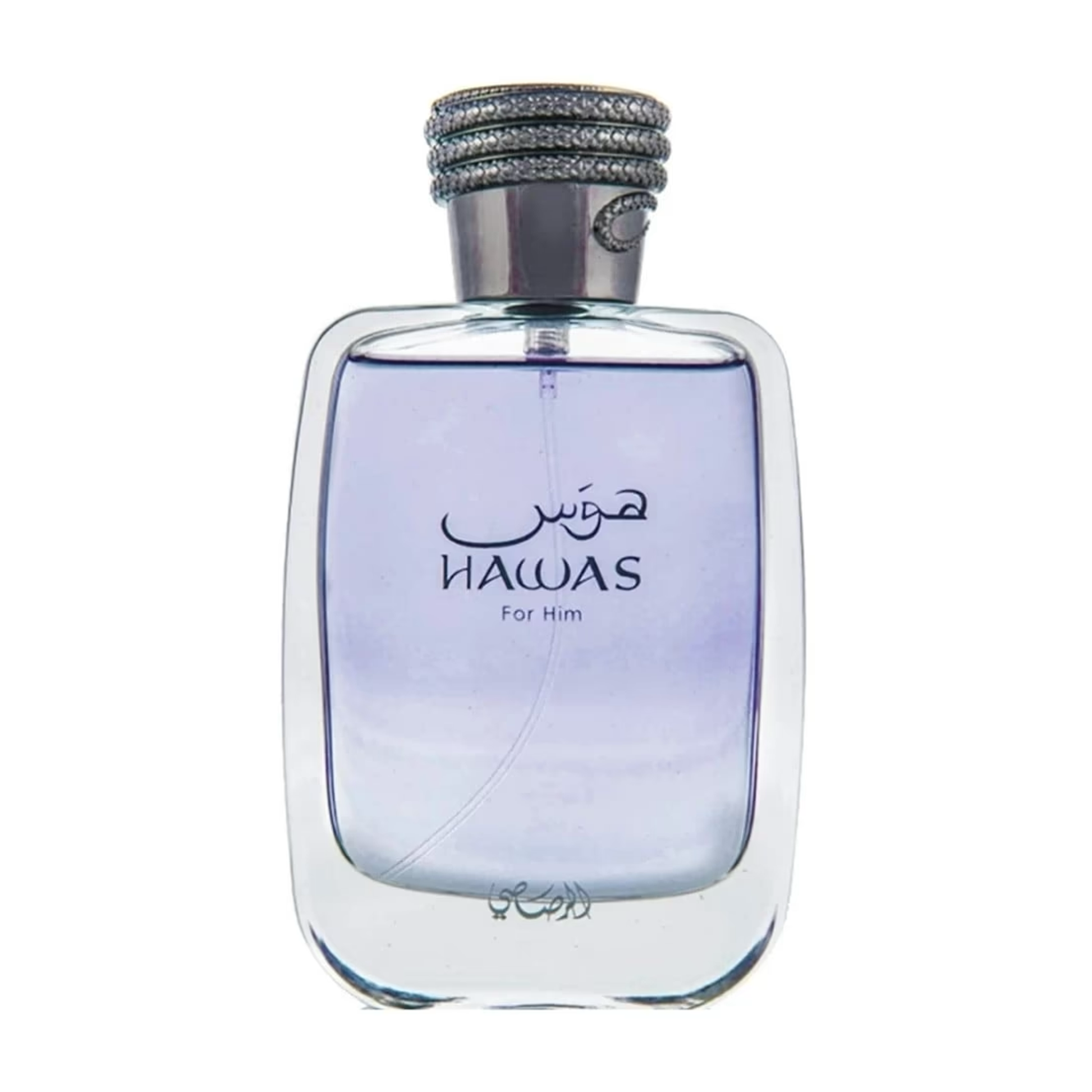 Hawas for Him opens with a fresh, aquatic burst of bergamot, apple, cinnamon, and lemon, creating a lively and energetic introduction. The heart features watery notes blended with plum, orange blossom, and cardamom, offering a fruity-spicy twist. The base is anchored by grey amber, musk, driftwood, and patchouli, delivering a sensual, masculine drydown with a clean marine finish.