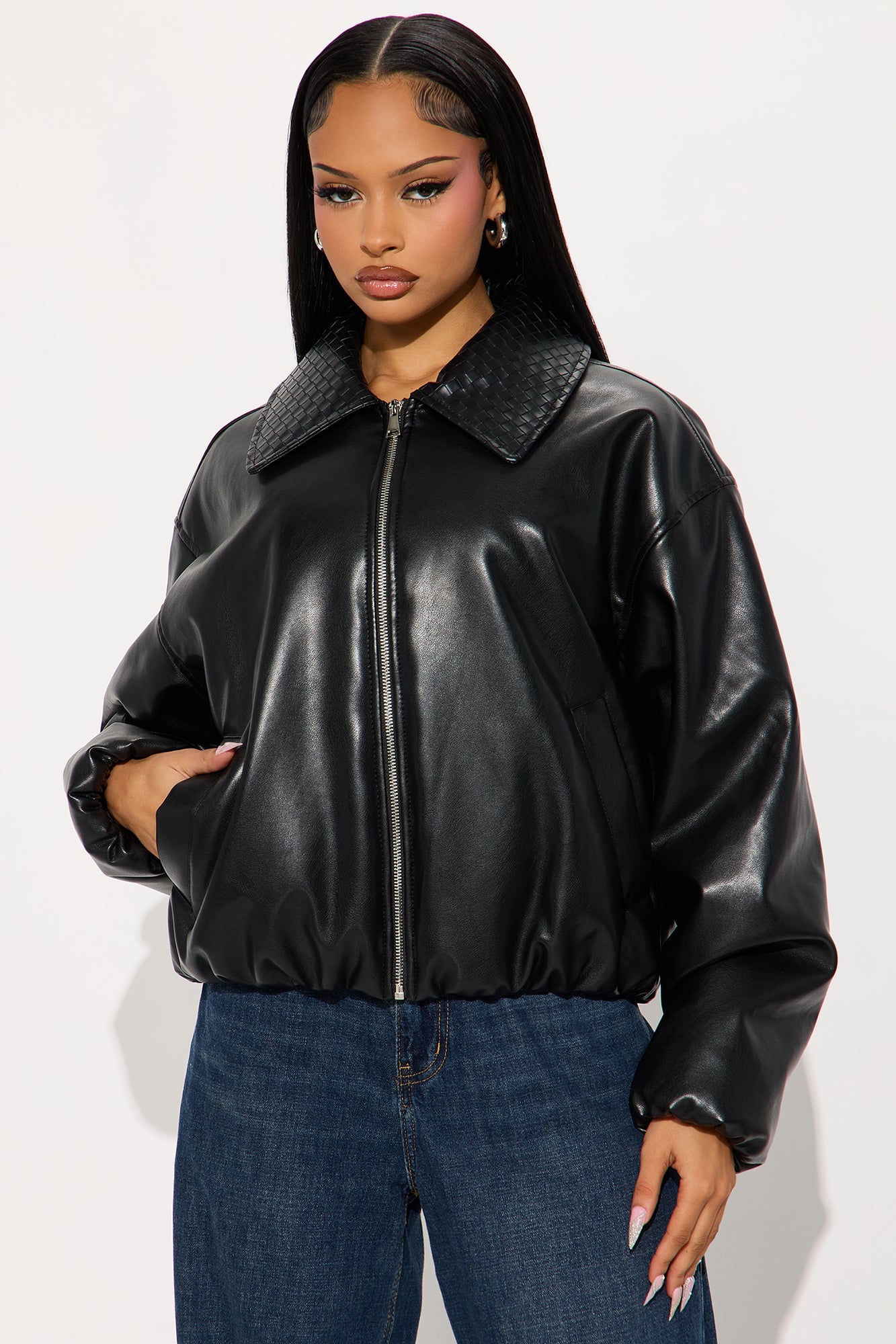 - Faux Leather Bomber Jacket