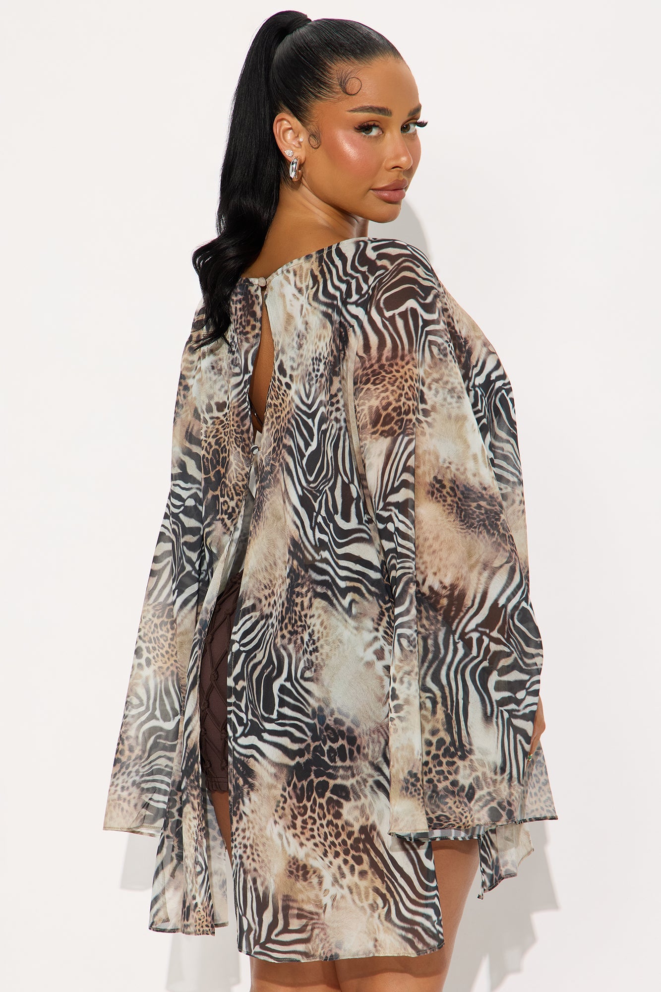 - Chiffon Poncho, Bra Top, and Mirco Mini Skirt Set