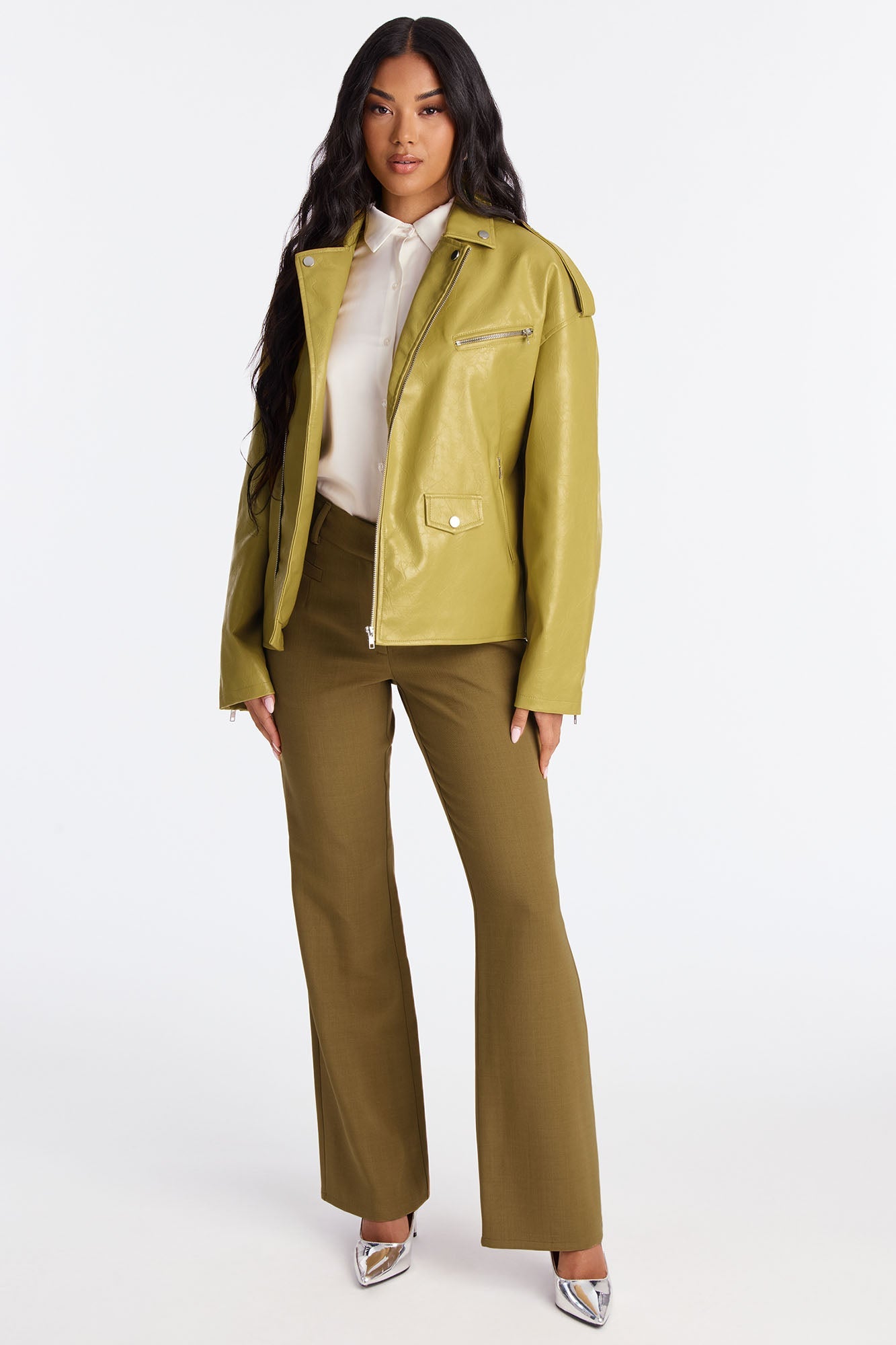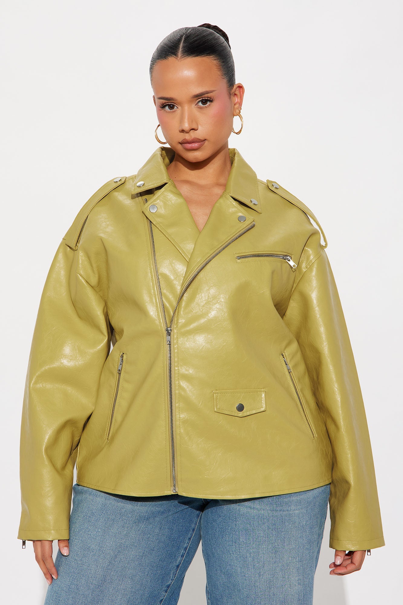 Higher Frequency Faux Leather Moto Jacket - Yellow