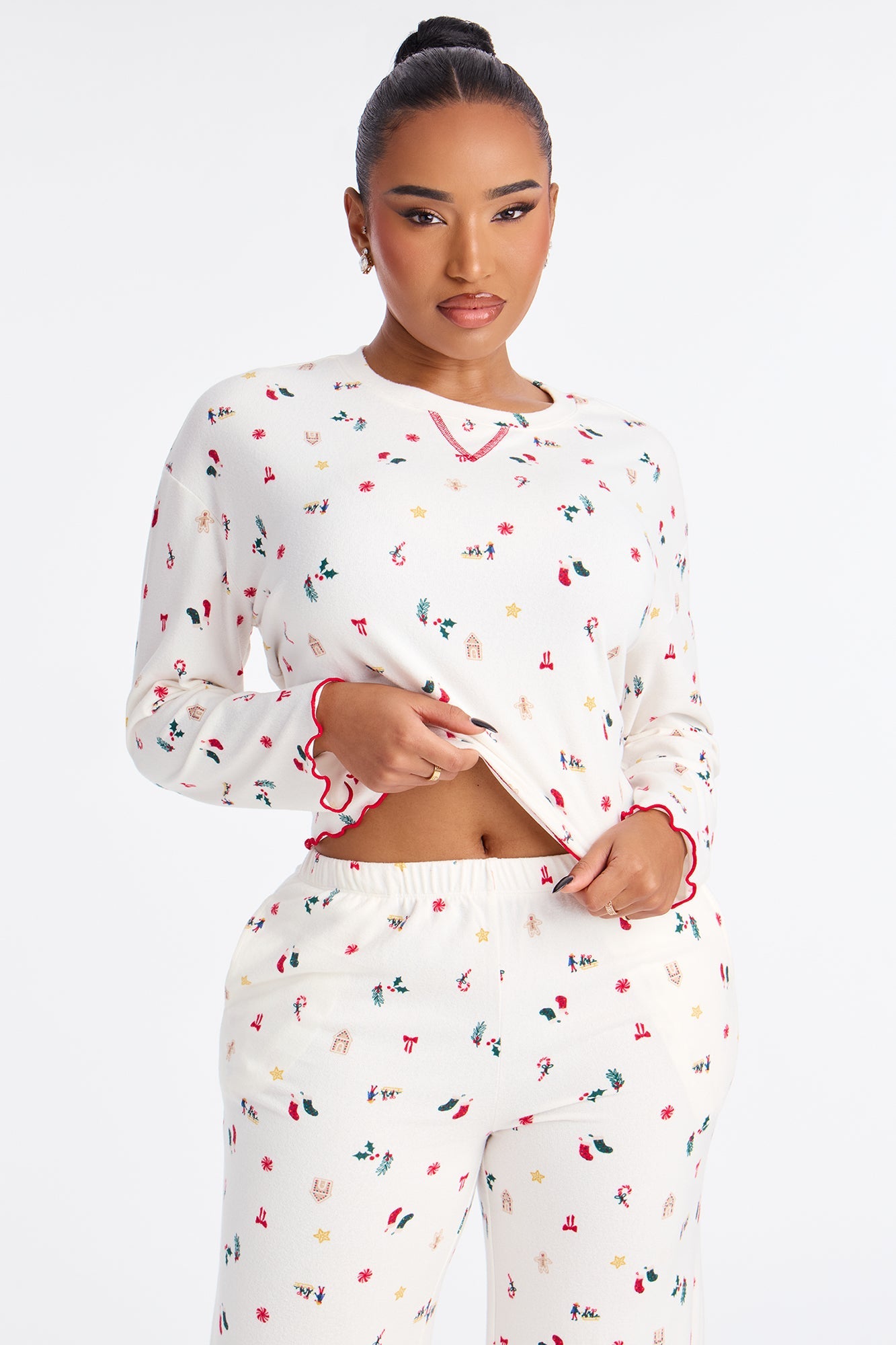 Holiday Season Long Sleeve PJ Pant Set - Ivory/combo