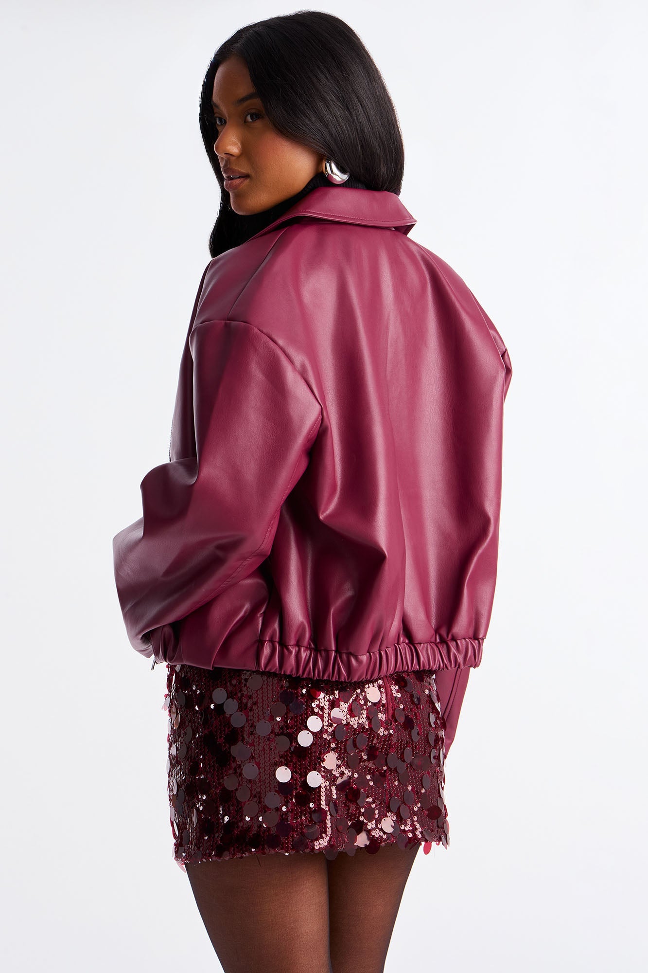 Iman It Girl Faux Leather Bomber Jacket - Burgundy