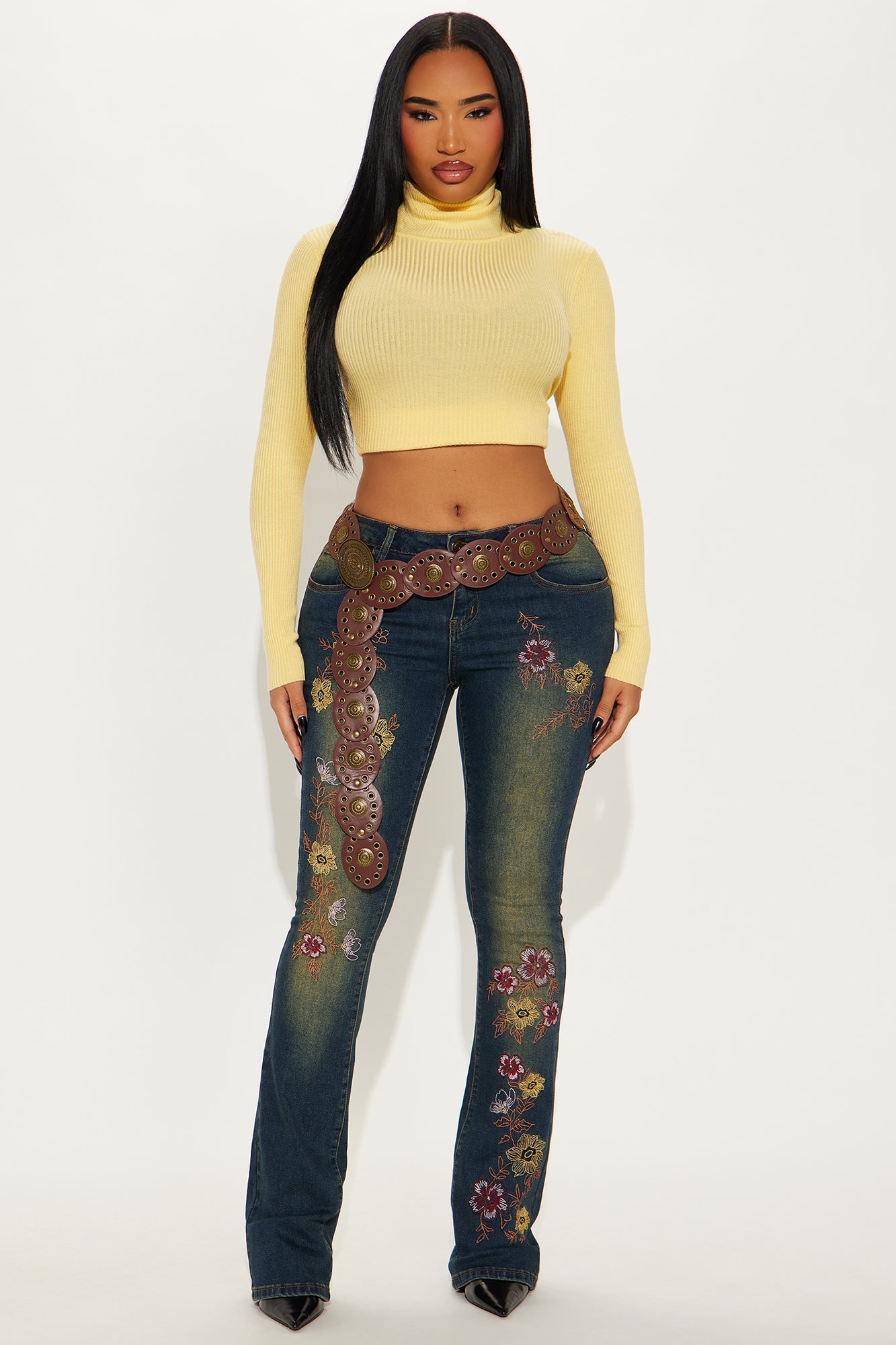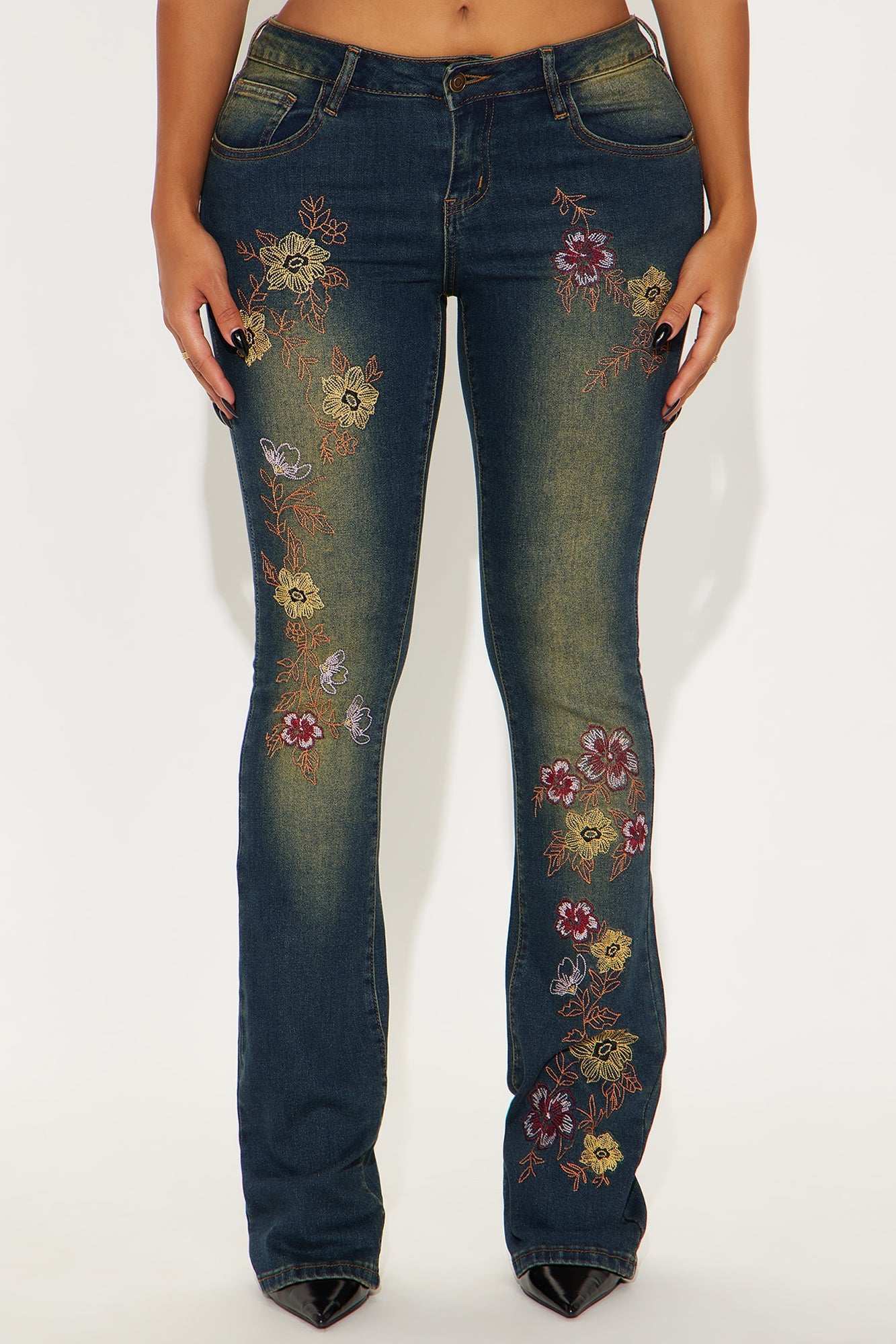 In Bloom Embroidered Low Rise Bootcut Jeans - Dark Wash