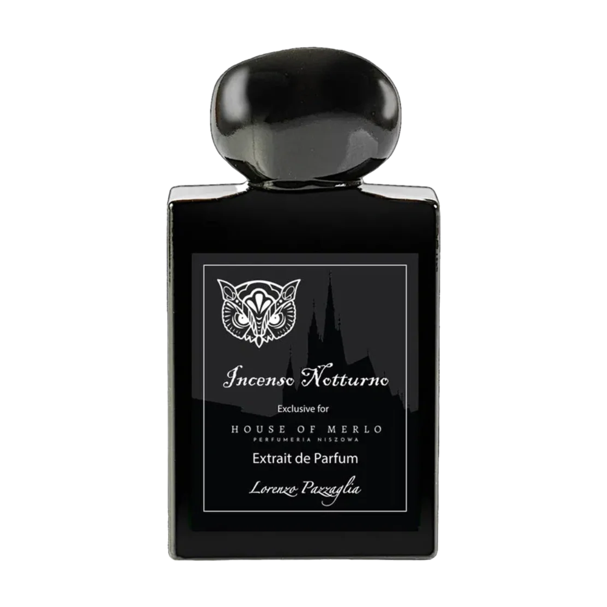 Incenso Notturno opens with white pepper, elemi resin, lemon peel, and bergamot, creating a bright yet spicy introduction. The heart develops into black pepper, patchouli, oud, cinnamon, nutmeg, and damask rose, blending warmth with earthy and floral depth. The base anchors with incense, cedarwood, sandalwood, vanilla, ambergris, and musk, producing a smoky, resinous, and sacred finish.