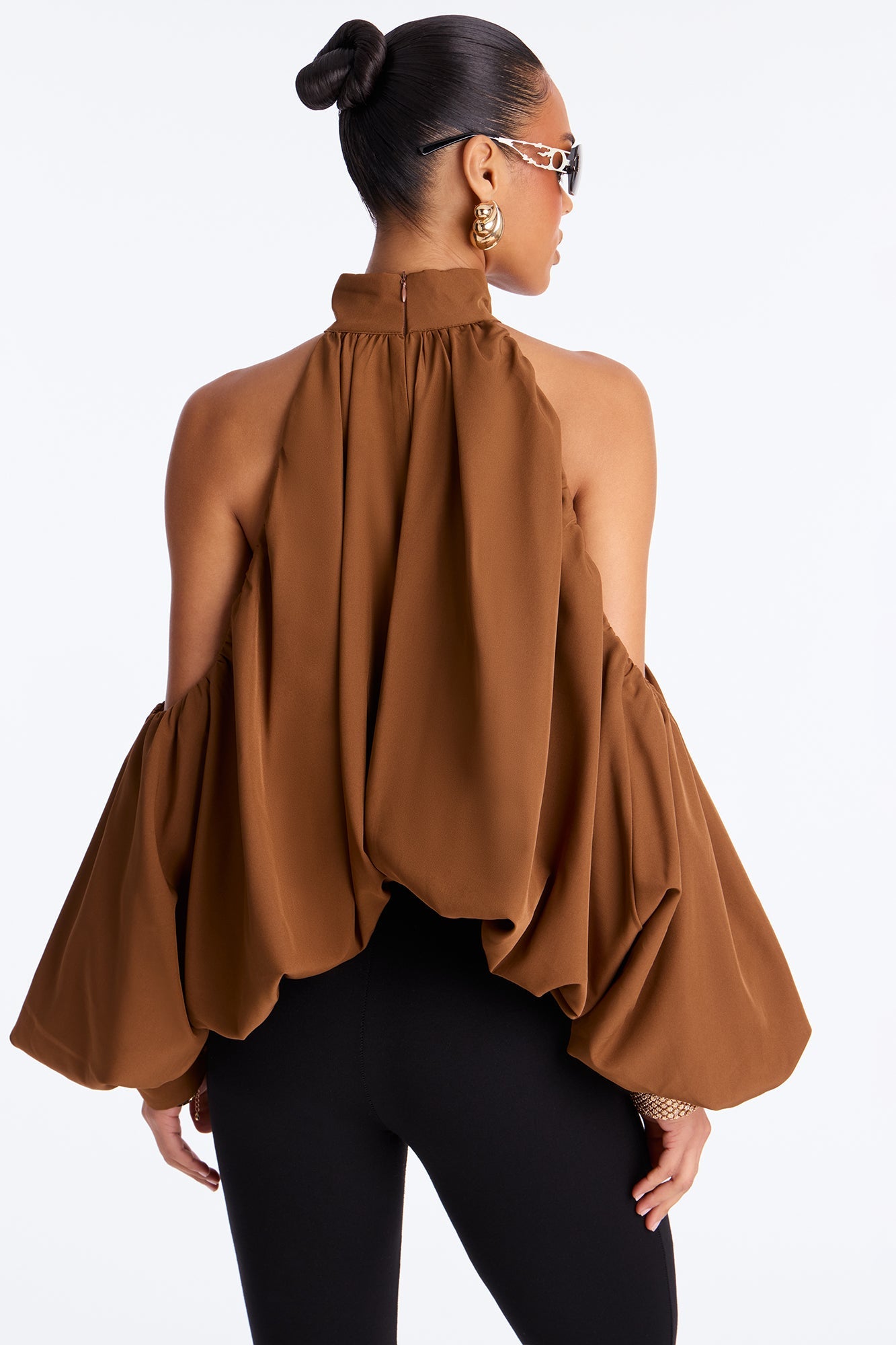 Inner Goddess Draped Lantern Top - Brown