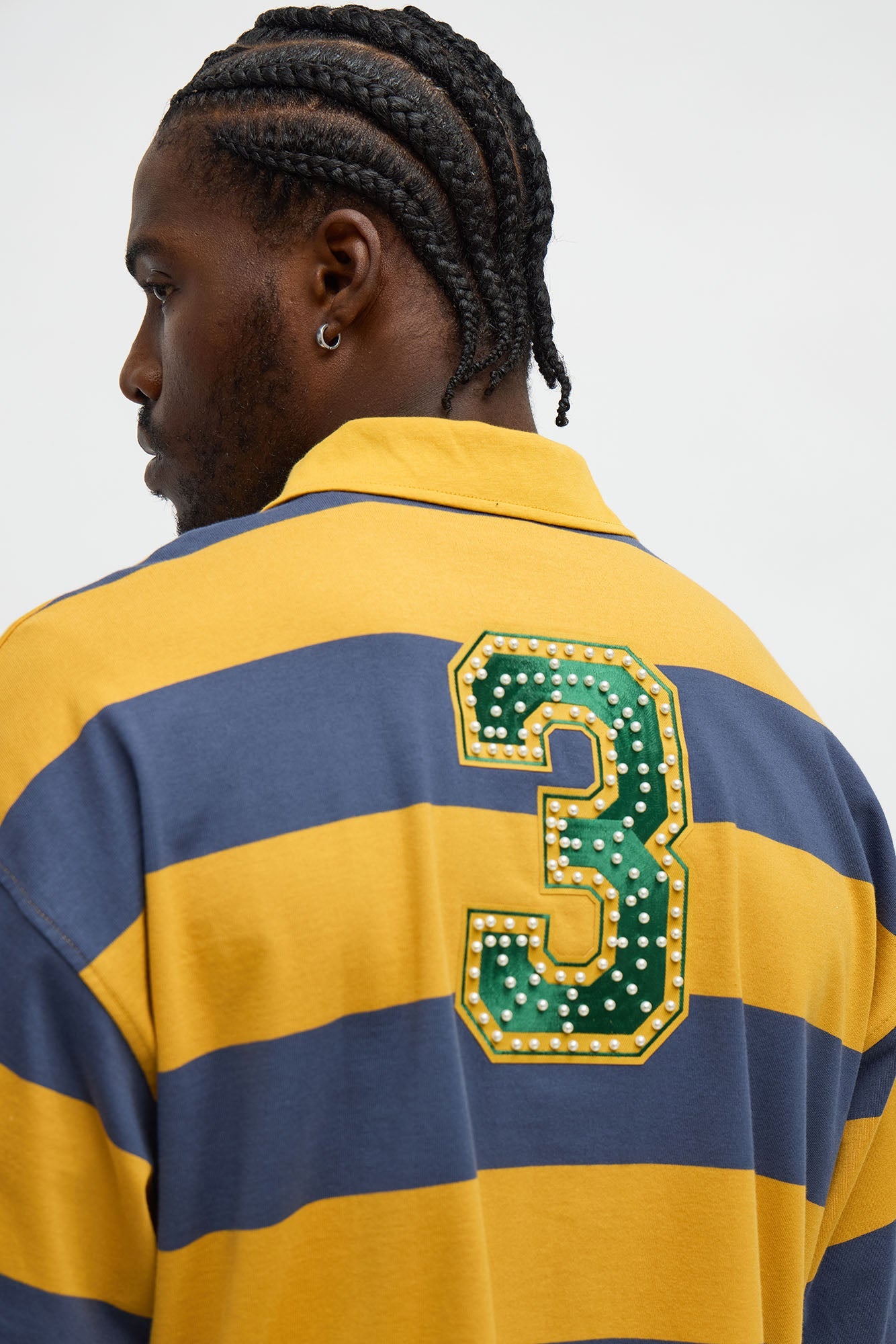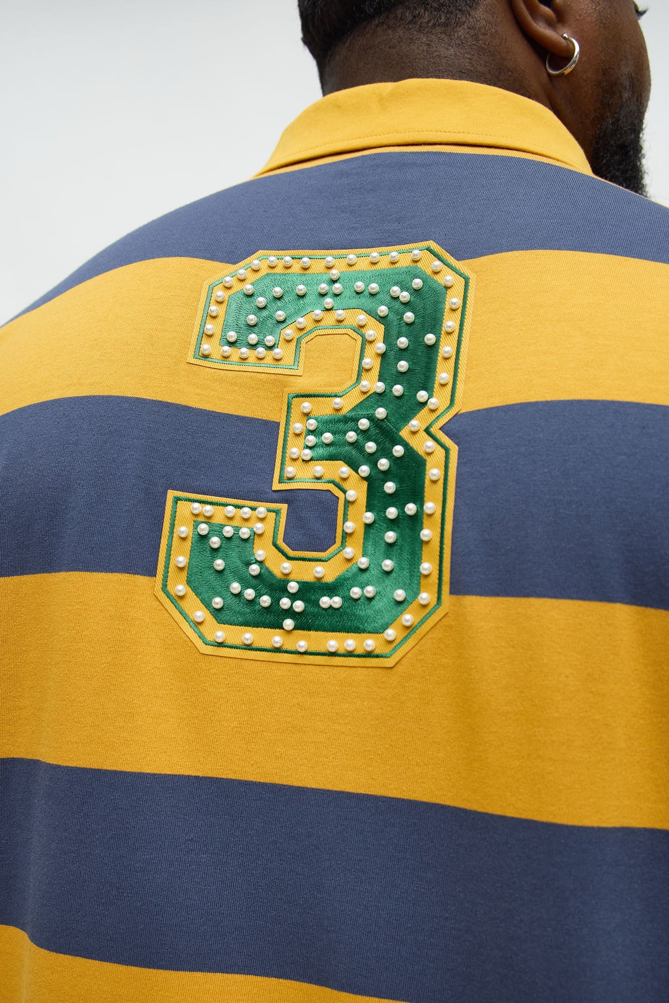 Cropped Ivy Prep Pearl Embellished Short Sleeve Polo - Mustard/combo