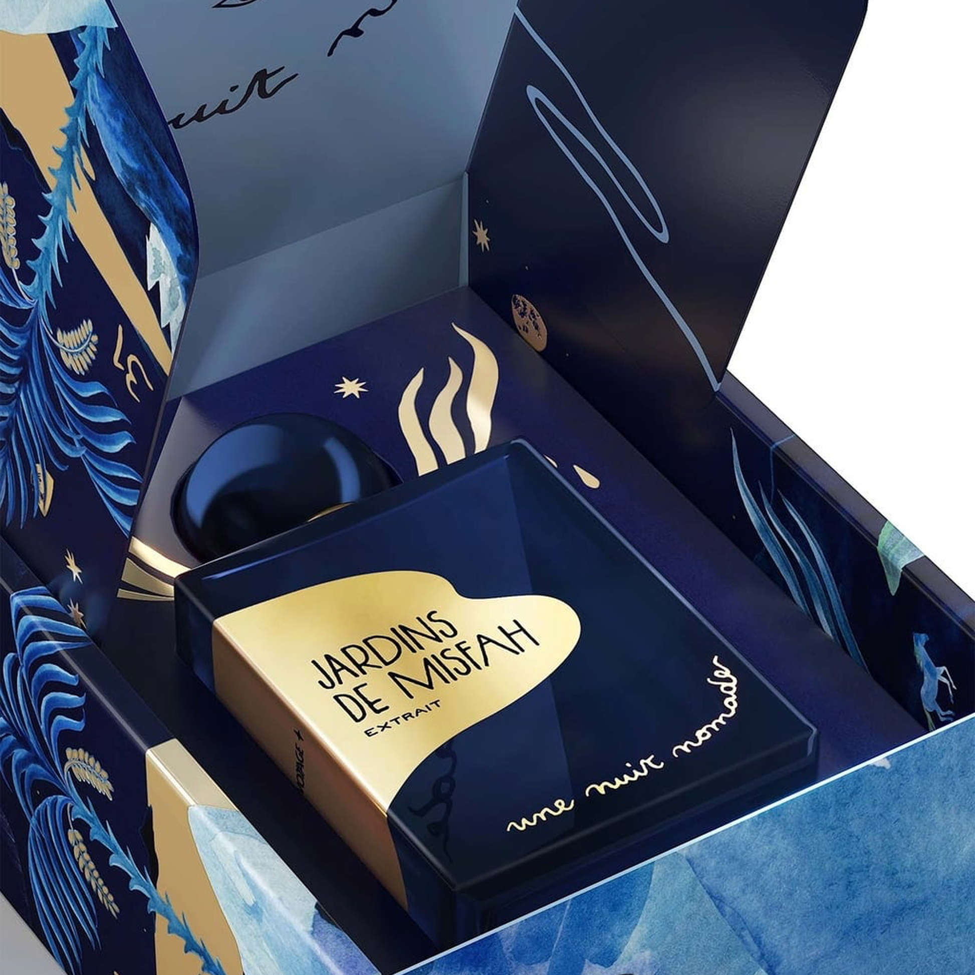Jardins de Misfah opens with warm notes of cardamom and nutmeg, setting a soft, spicy tone. The heart reveals a luxurious blend of rose absolute, rose essence, and a creamy date accord that evokes the sweetness of Arabian gardens. The base unfolds with almond and saffron, adding depth and warmth to this serene oriental composition inspired by the oasis of Misfah in Oman.