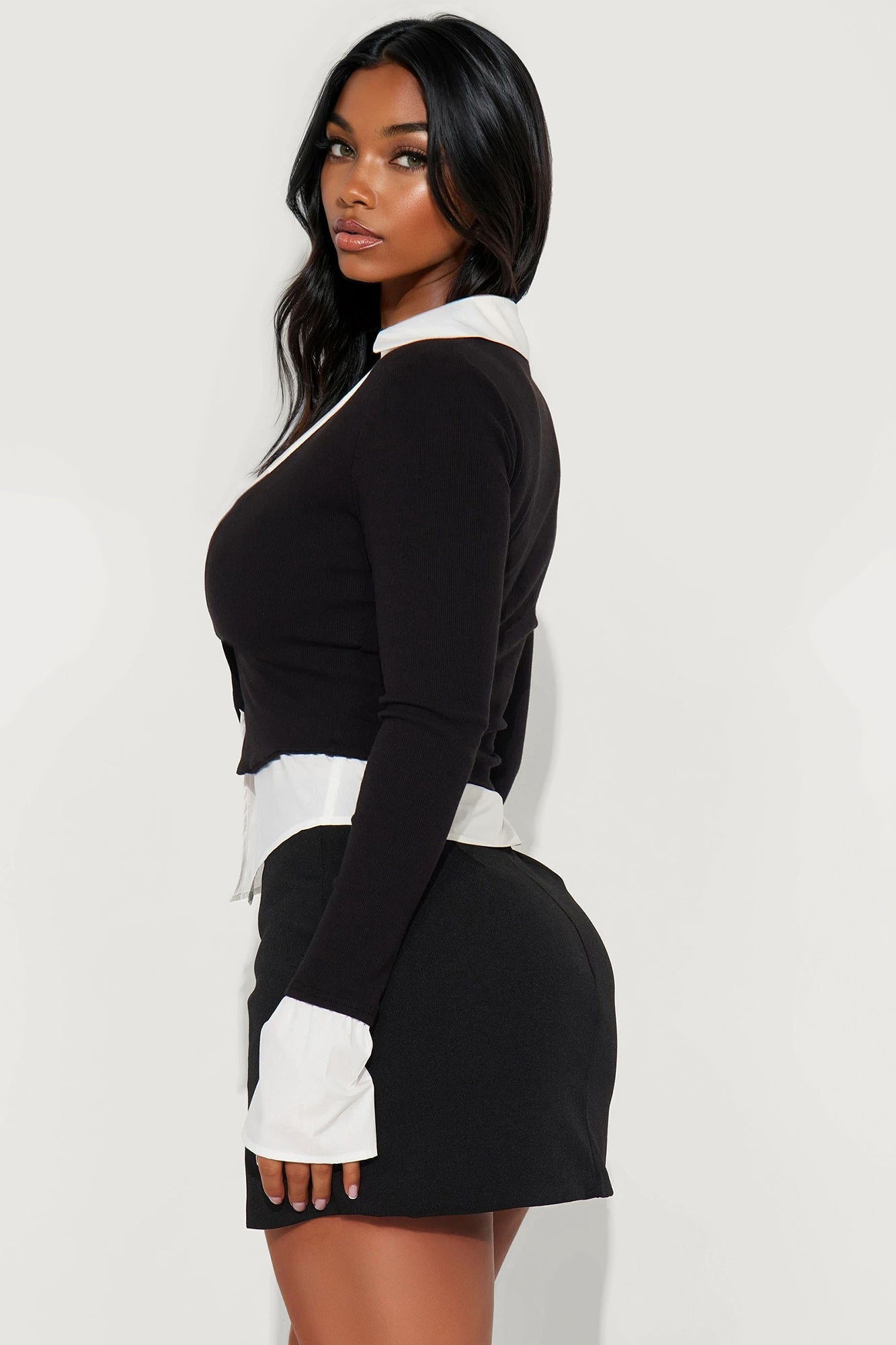 Jinx Long Sleeve Collared Top - Black/combo