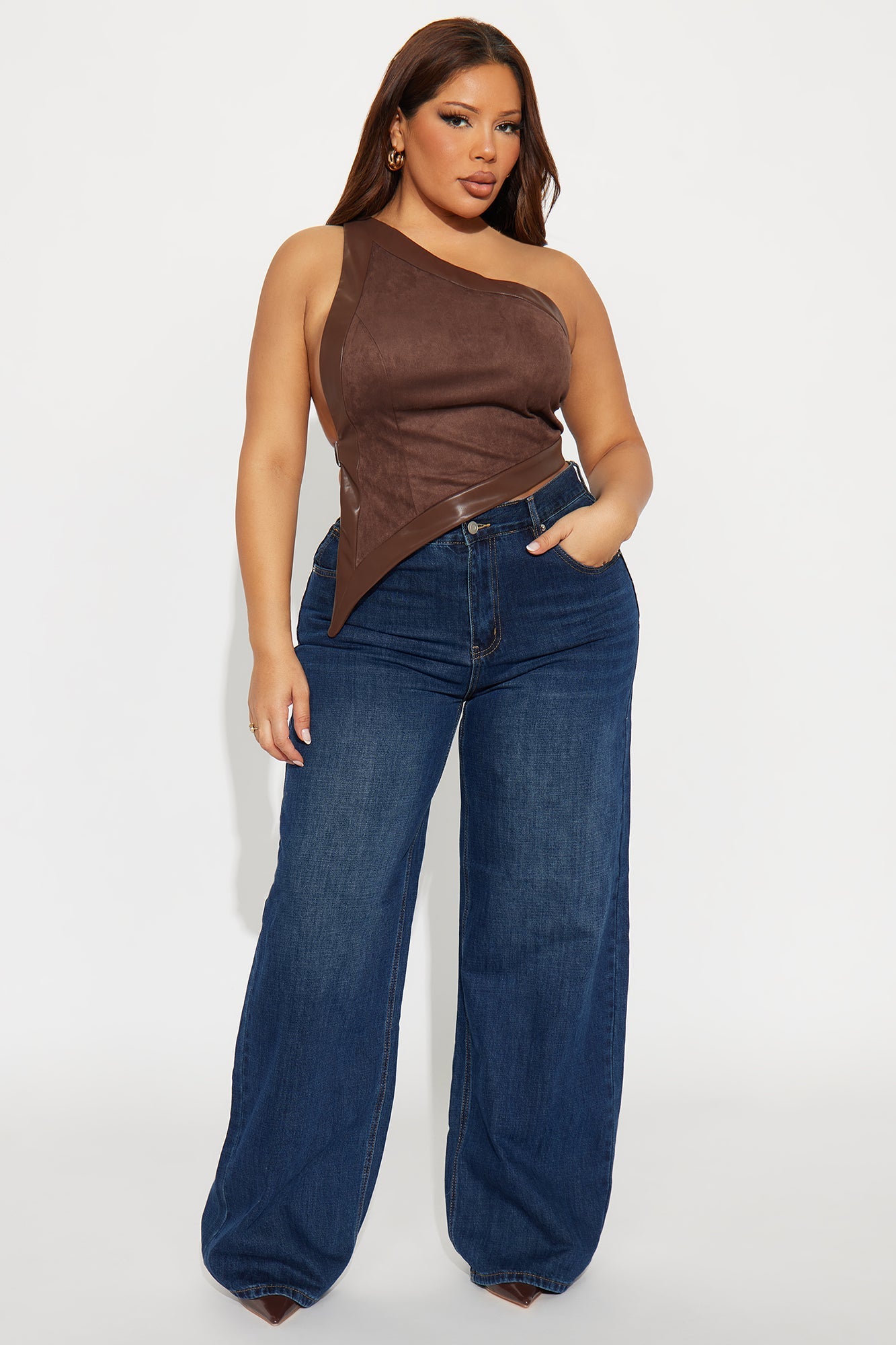 Keep It Spicy Asymmetrical Faux Suede Top - Brown