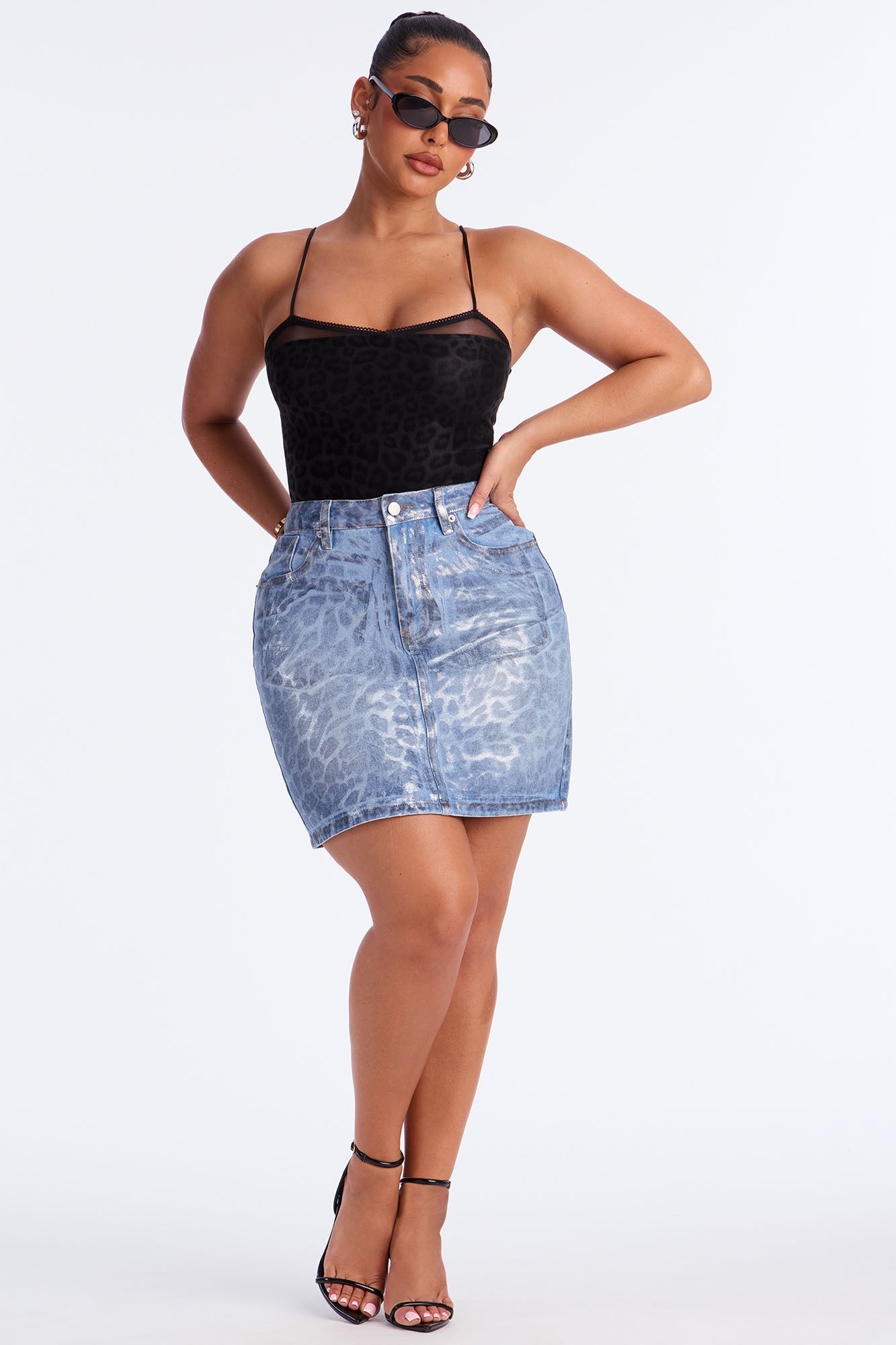 Kiara Metallic Coated Leopard Midi Pencil Skirt - Leopard