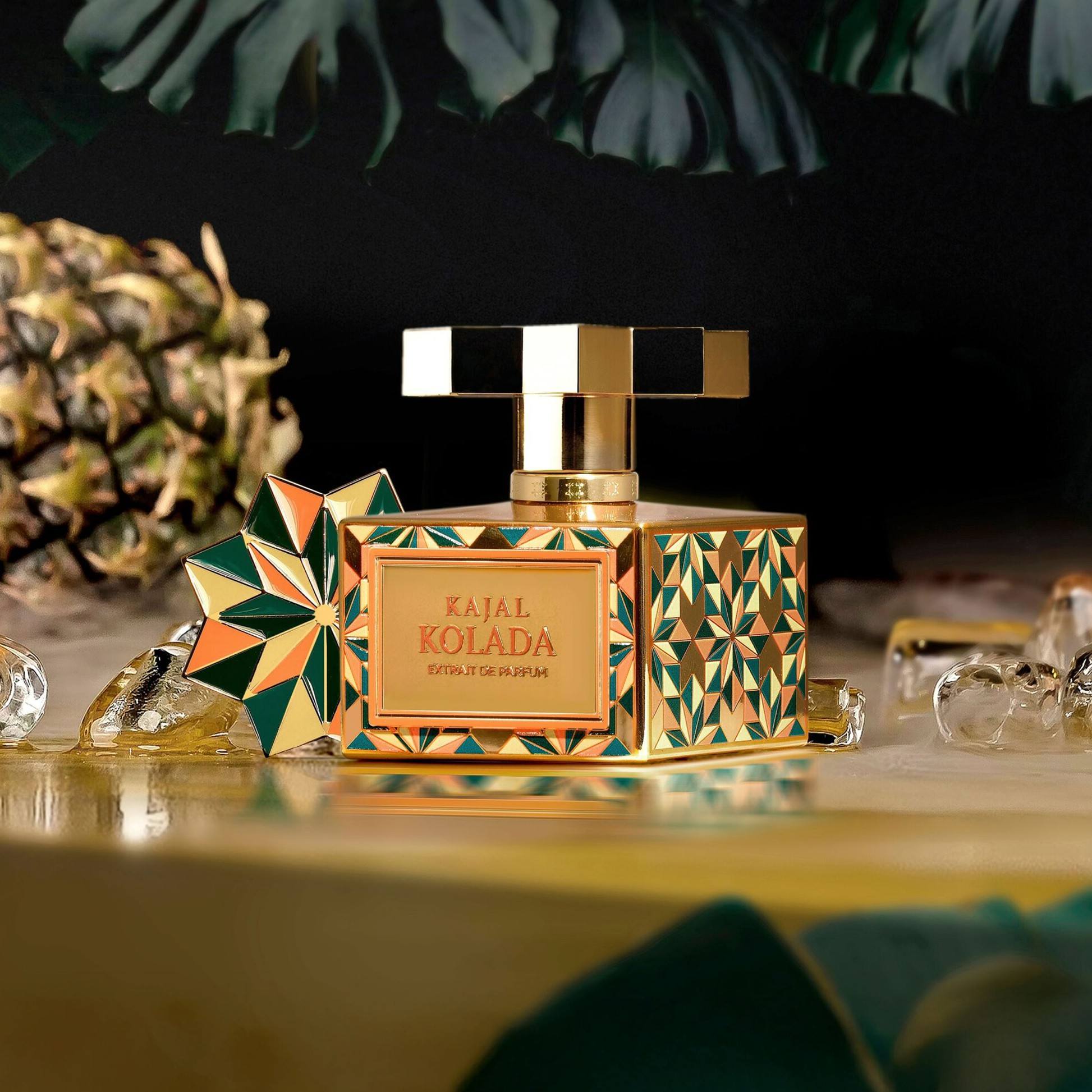 Kolada by Kajal is a tropical, uplifting fragrance inspired by the carefree spirit of summer. It opens with juicy pineapple, bergamot, and bright fruity notes that immediately evoke a sense of freshness and joy. The heart introduces soft floral nuances of violet and lily of the valley, adding an airy sweetness to the composition. The base settles into creamy woods, musks, and a gentle gourmand warmth that enhances its exotic character.