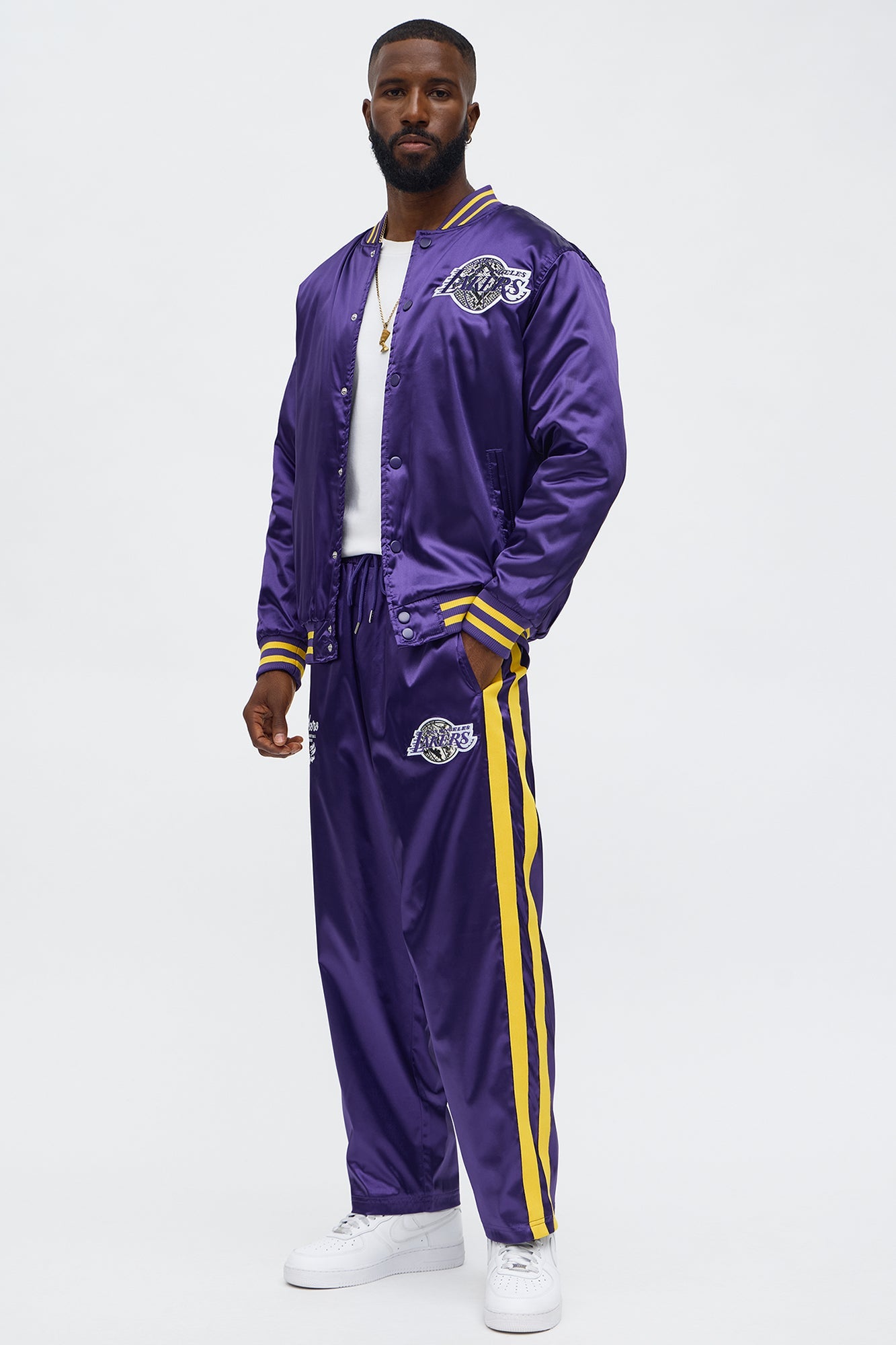 - Pair With "Lakers Night Drift Satin Varsity Jacket"
