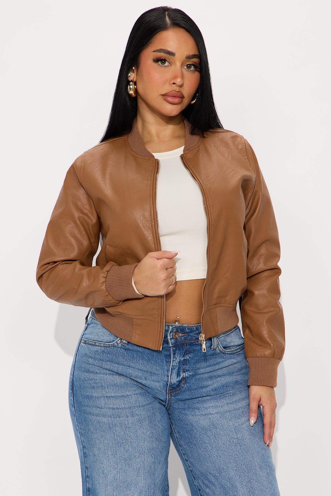 - Faux Leather Bomber Jacket