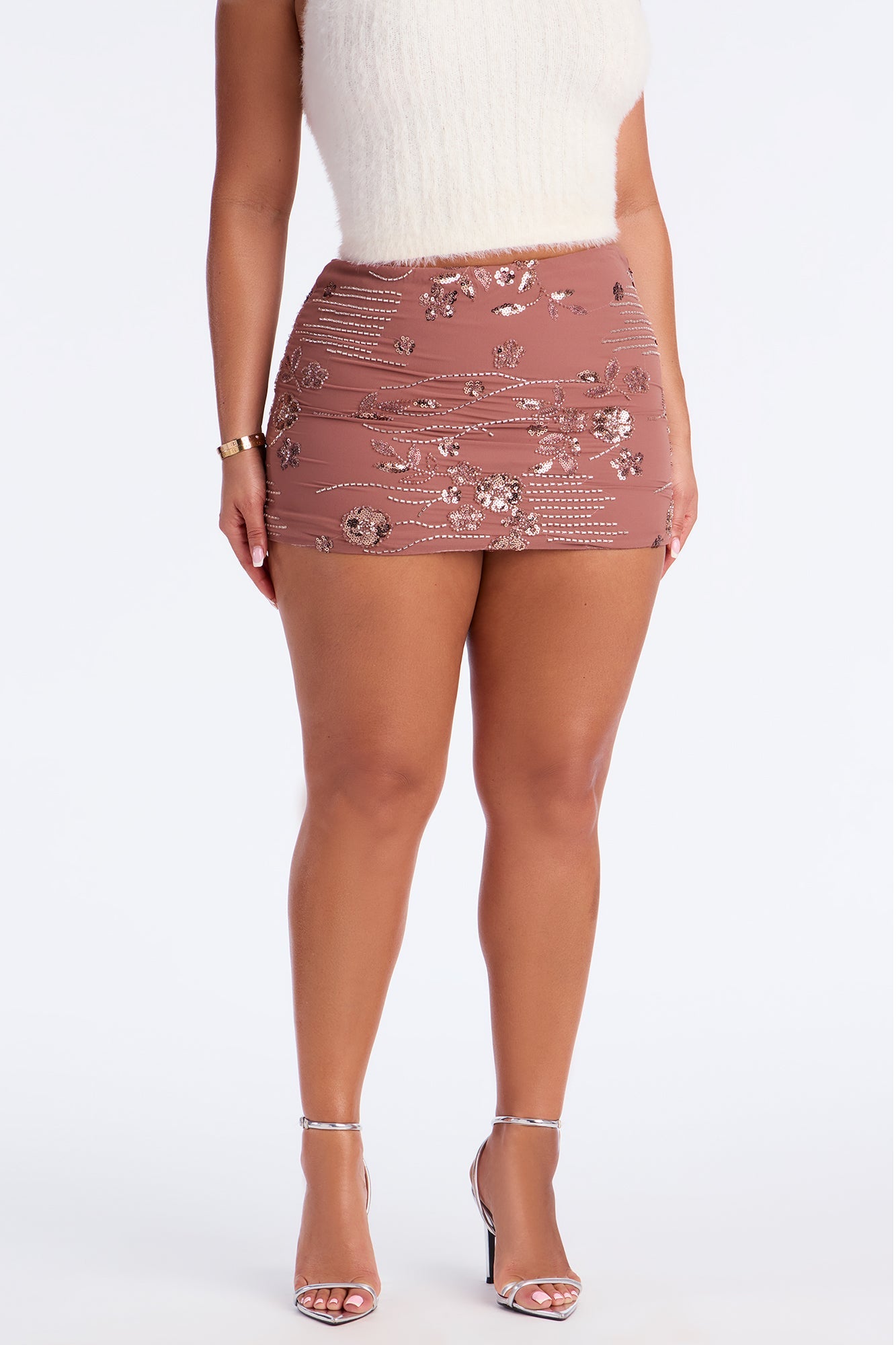 Life Of The Party Floral Beaded Mini Skirt - Mocha
