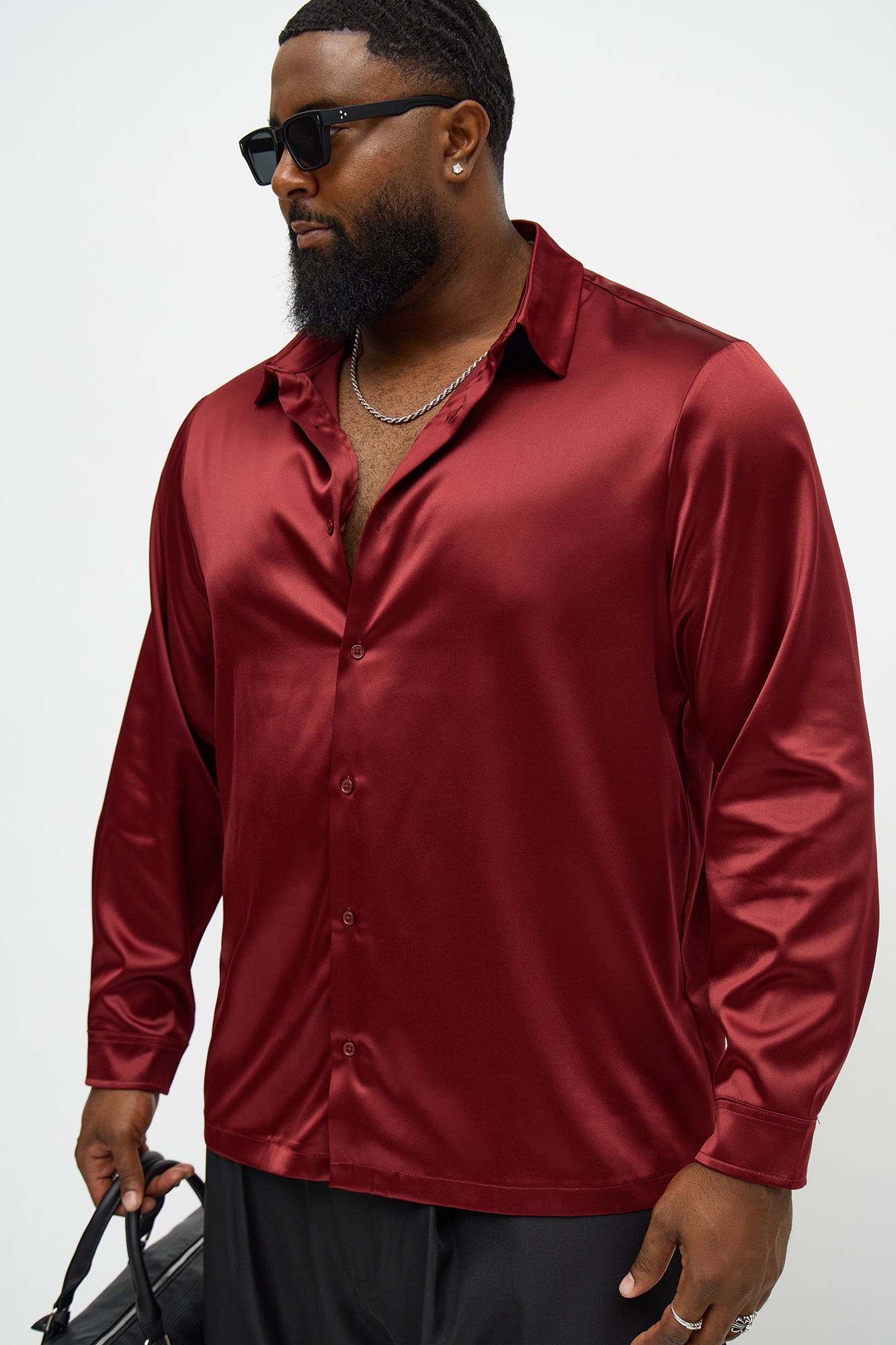 Links Satin Long Sleeve Button Up Shirt - Burgundy