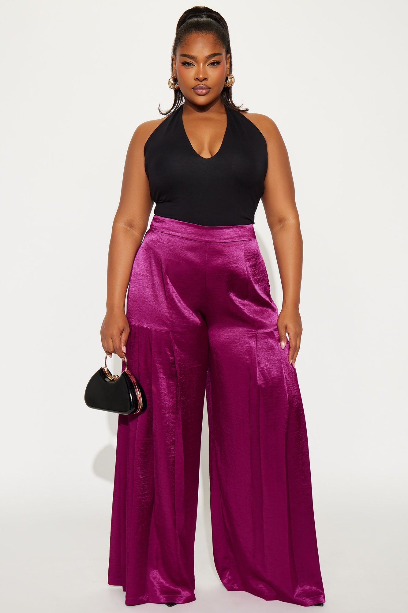 Lost In Your Eyes Satin Wide Leg Pant 33 - Plum