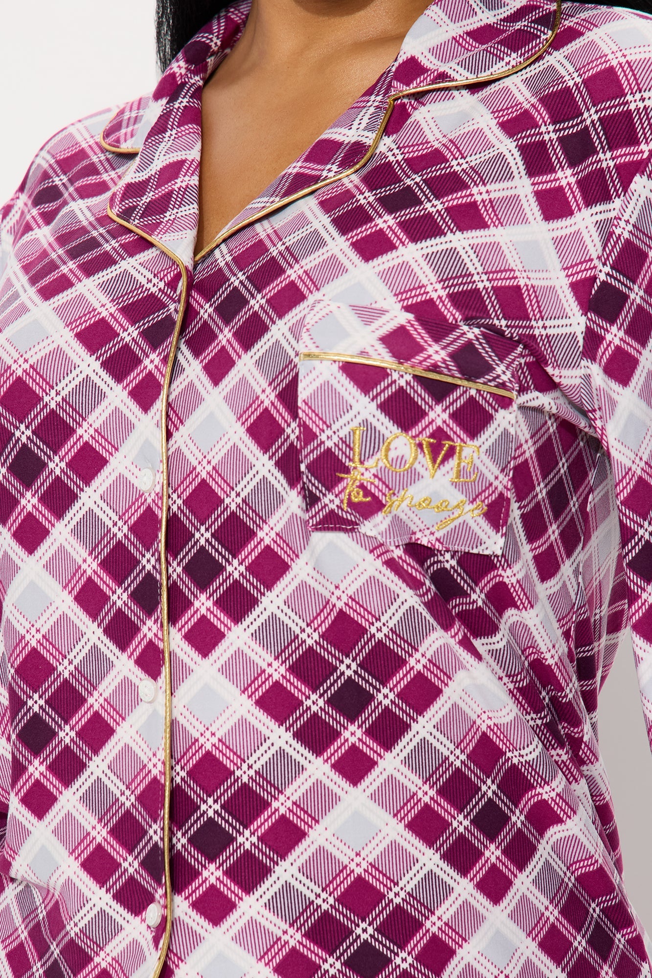Love Snoozing Embroidered Glitter Long Sleeve PJ Pant Set - Burgundy