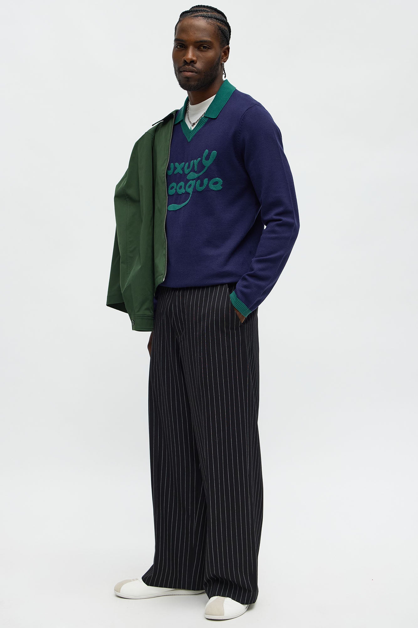 Luxury League Lightweight Knit Long Sleeve Polo - Navy/combo