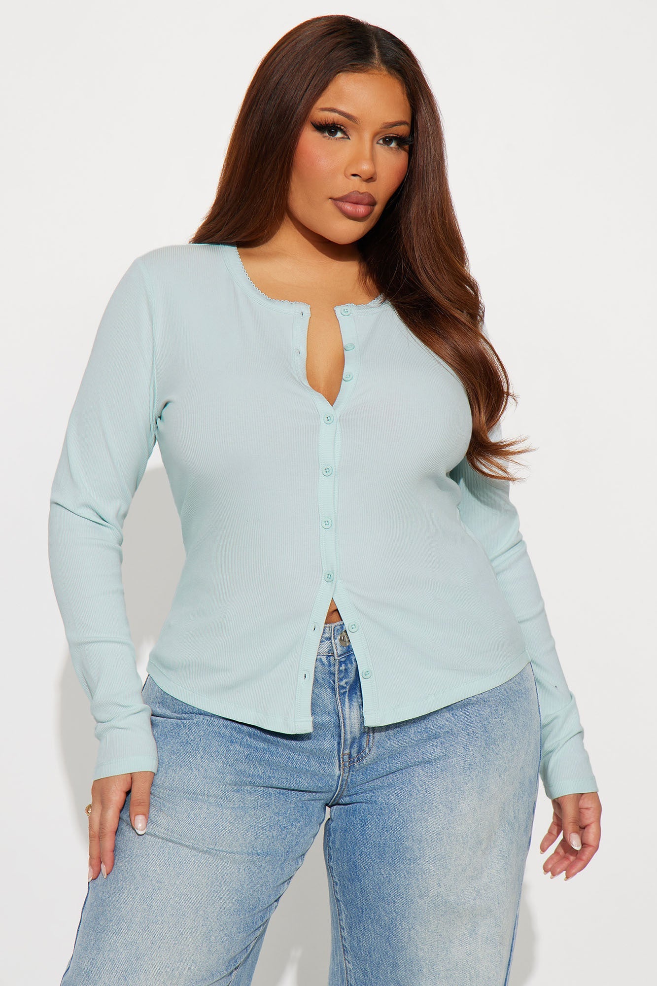 Maddie Button Up Ribbed Top - SkyBlue