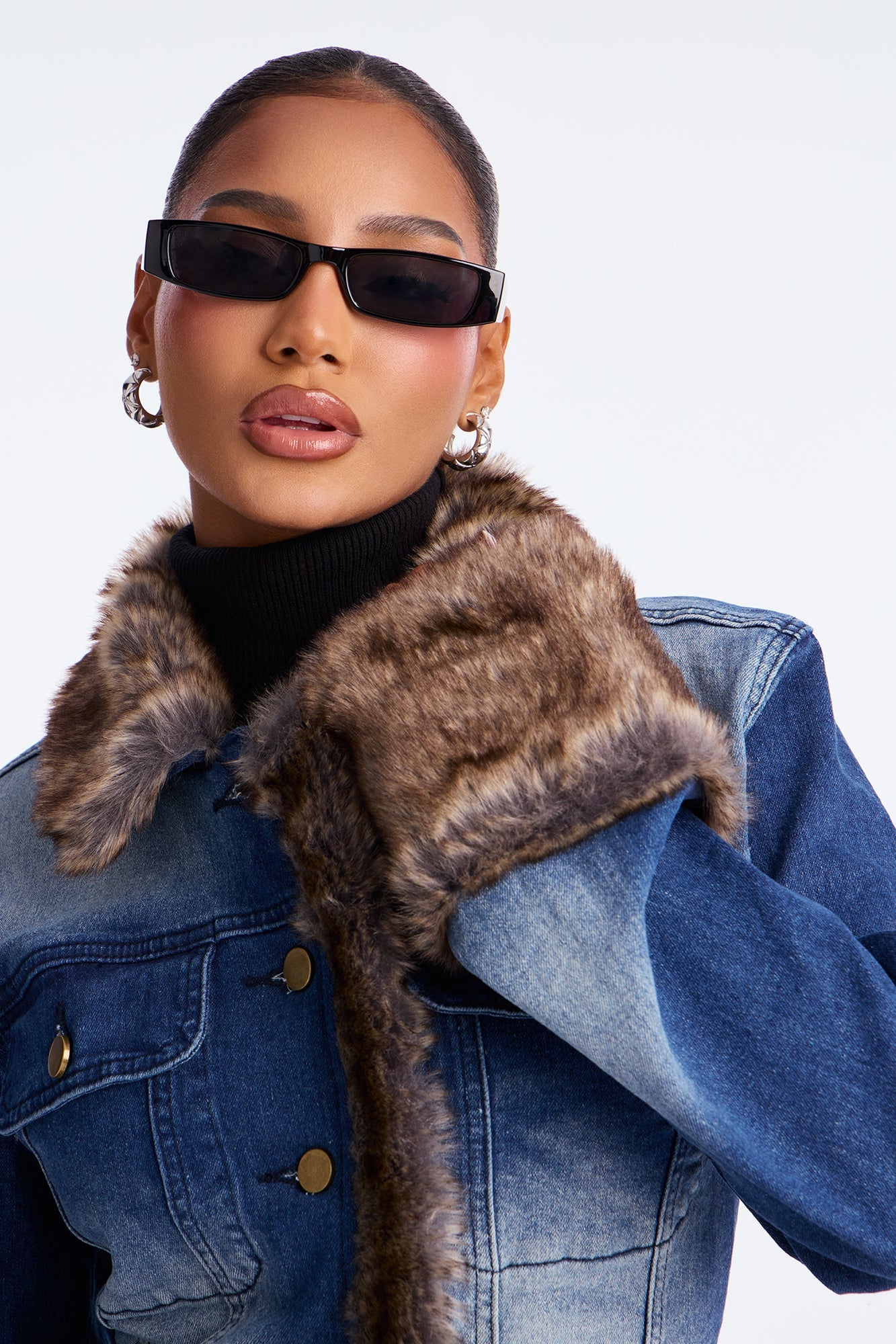 Meant To Be Fur Denim Jacket Short Set - Medium Wash