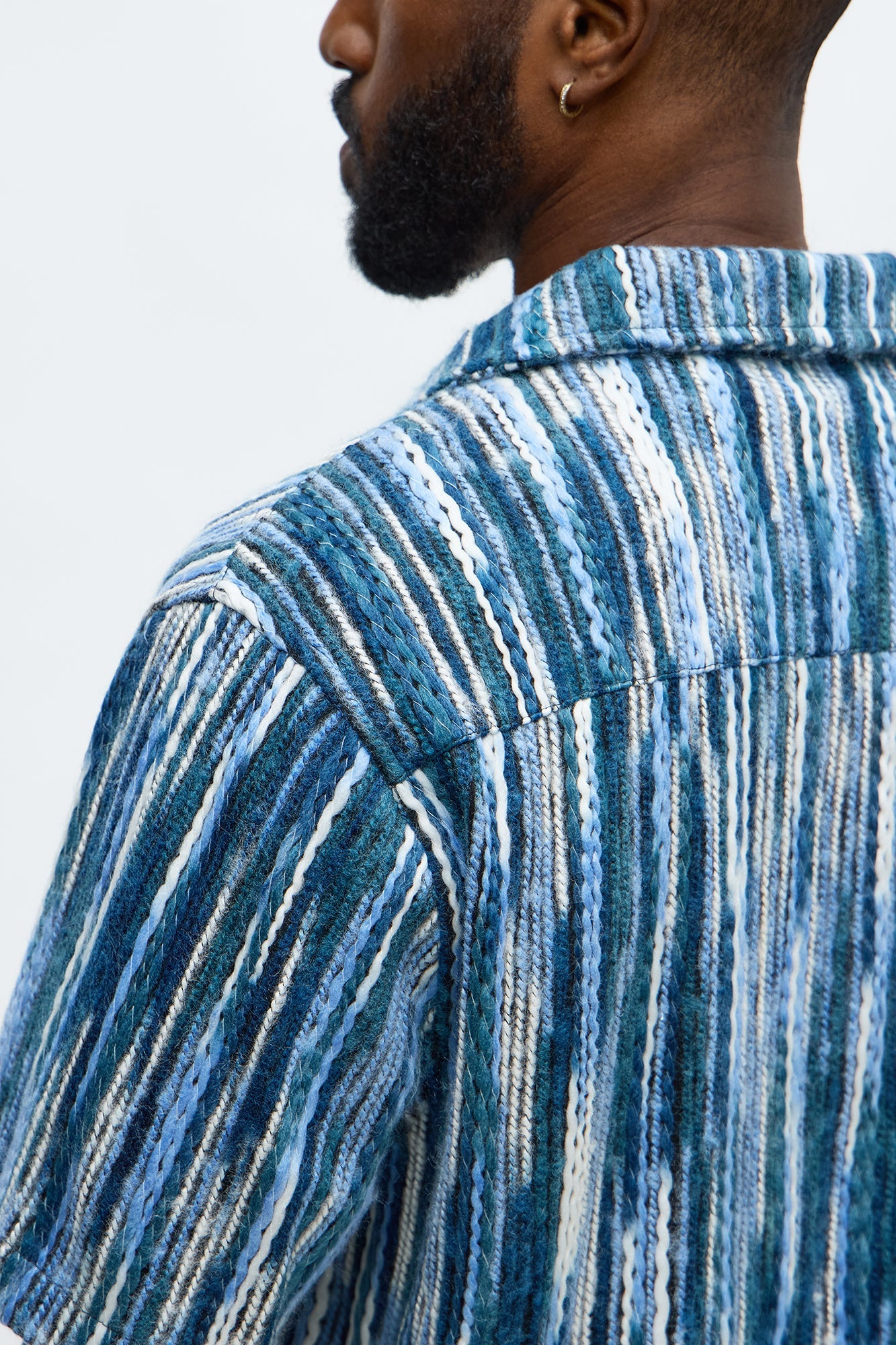 Melange Yarn Closed Closed Collar Short Sleeve Shirt - Blue/combo