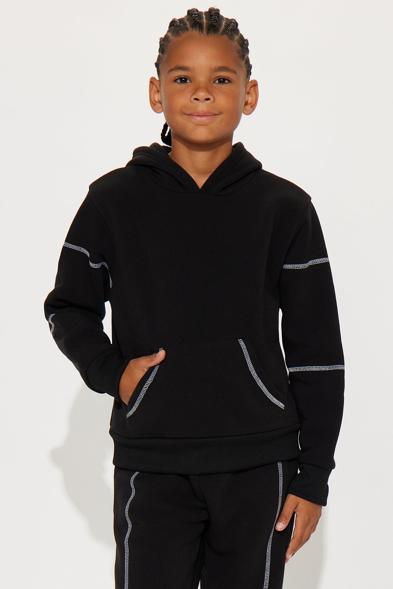 Mini Aaron Contrast Stitching Hoodie And Jogger Pant Set - Black