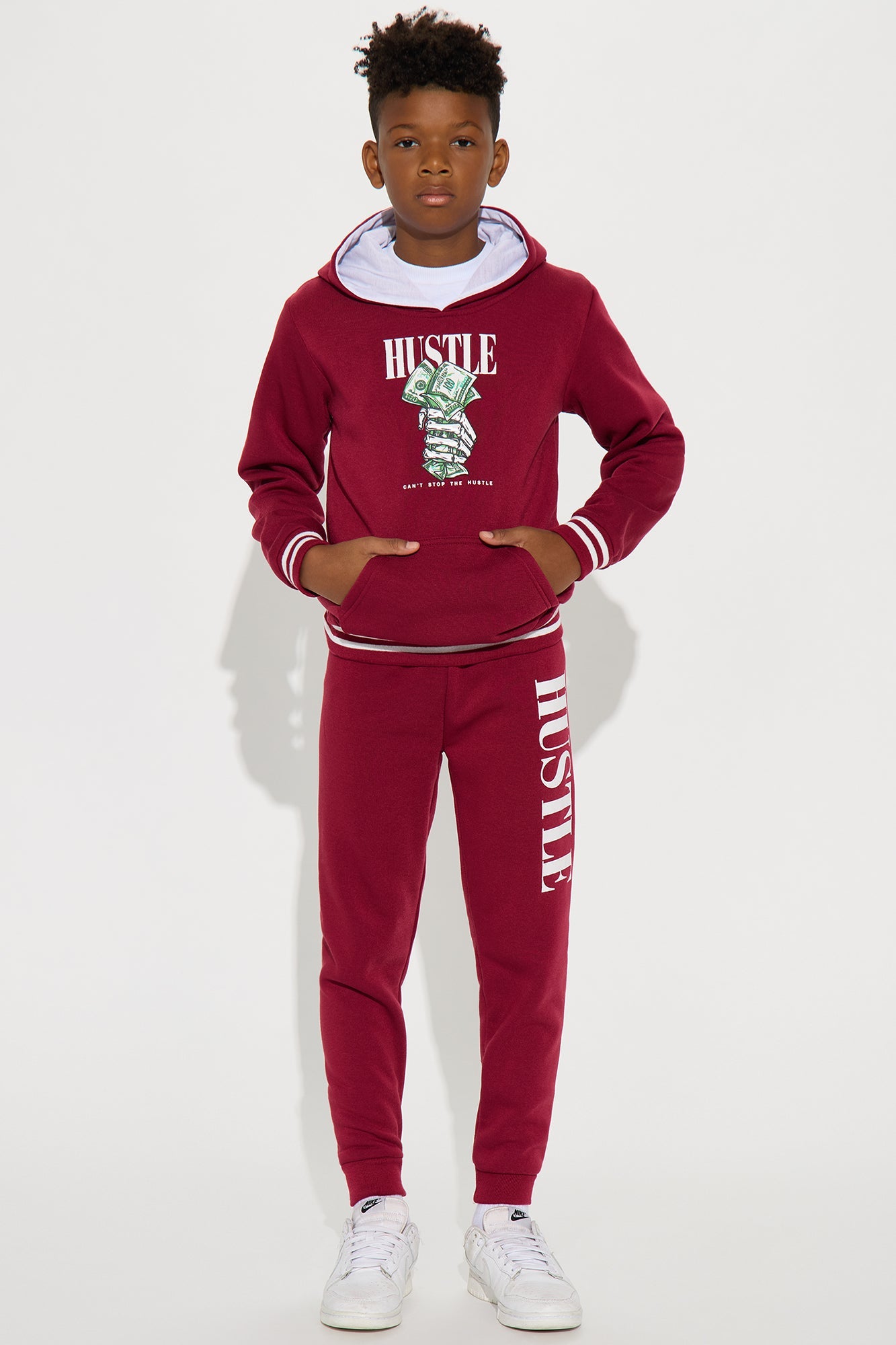 Mini Hustle For Life Hoodie and Jogger Pant Set - Burgundy