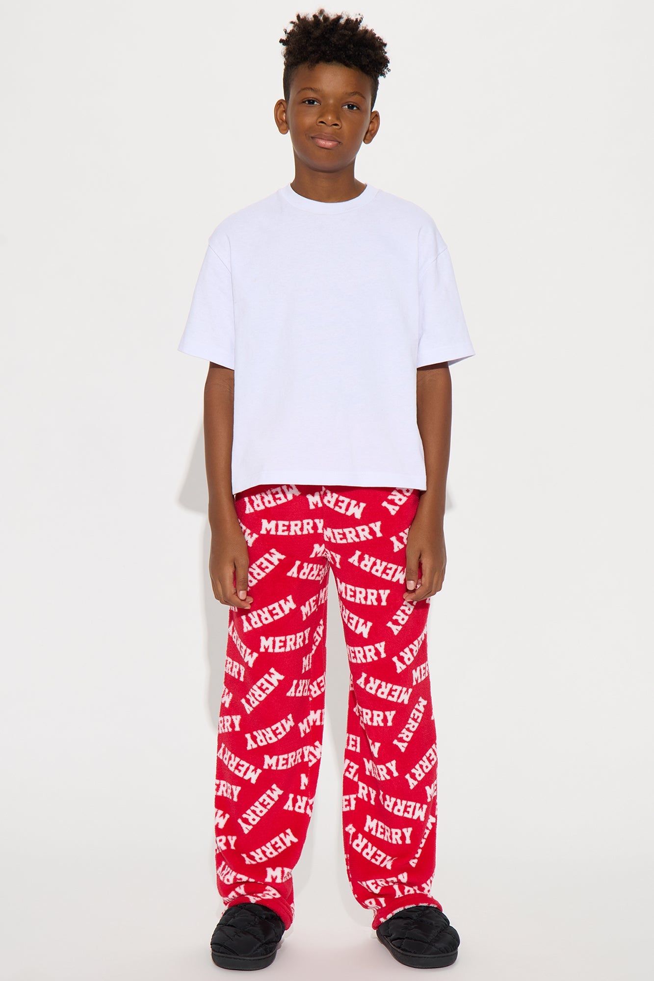 Mini Merry Everything Matching Family Plush Pants - Red/White