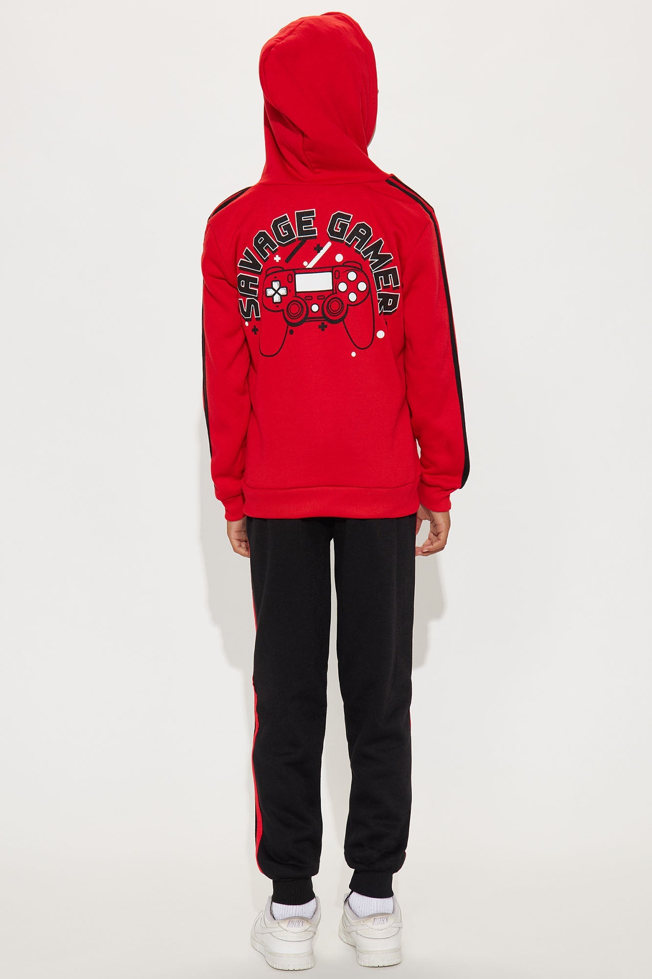 Mini Savage Gamer Pullover Hoodie And Jogger Pant Set - Red/combo