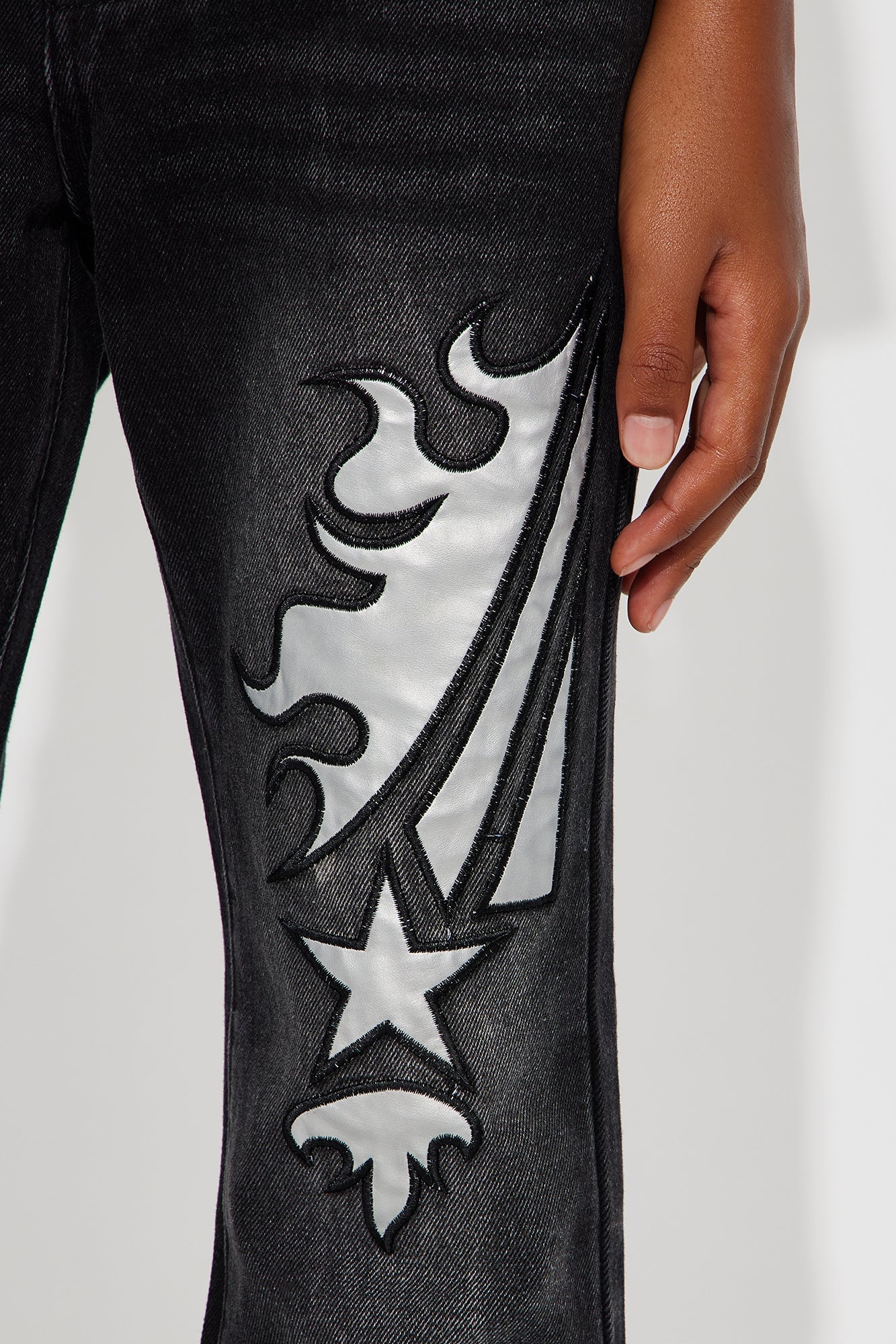 Mini Stacked Slim Flare Blazing Star Jean - Black Wash